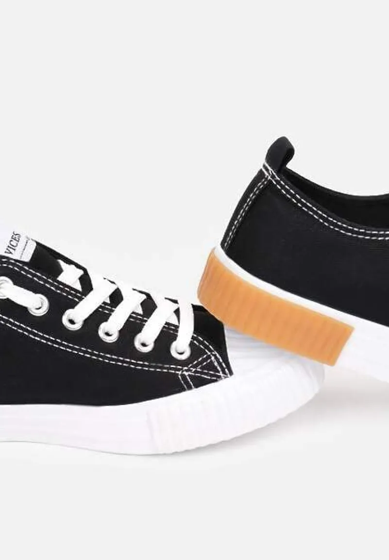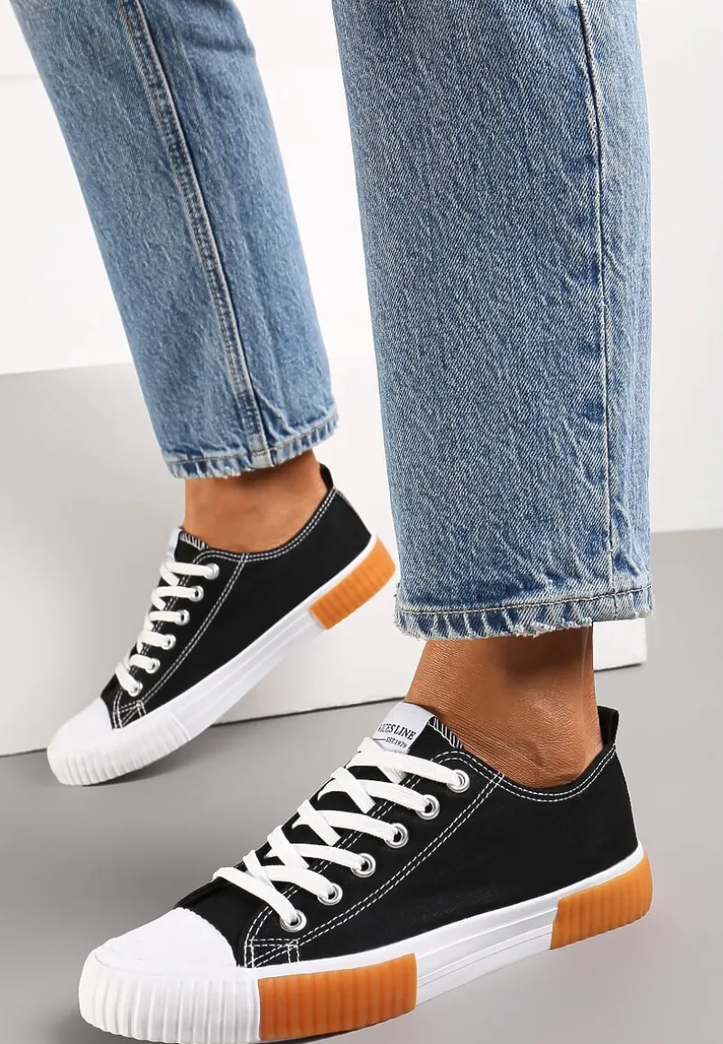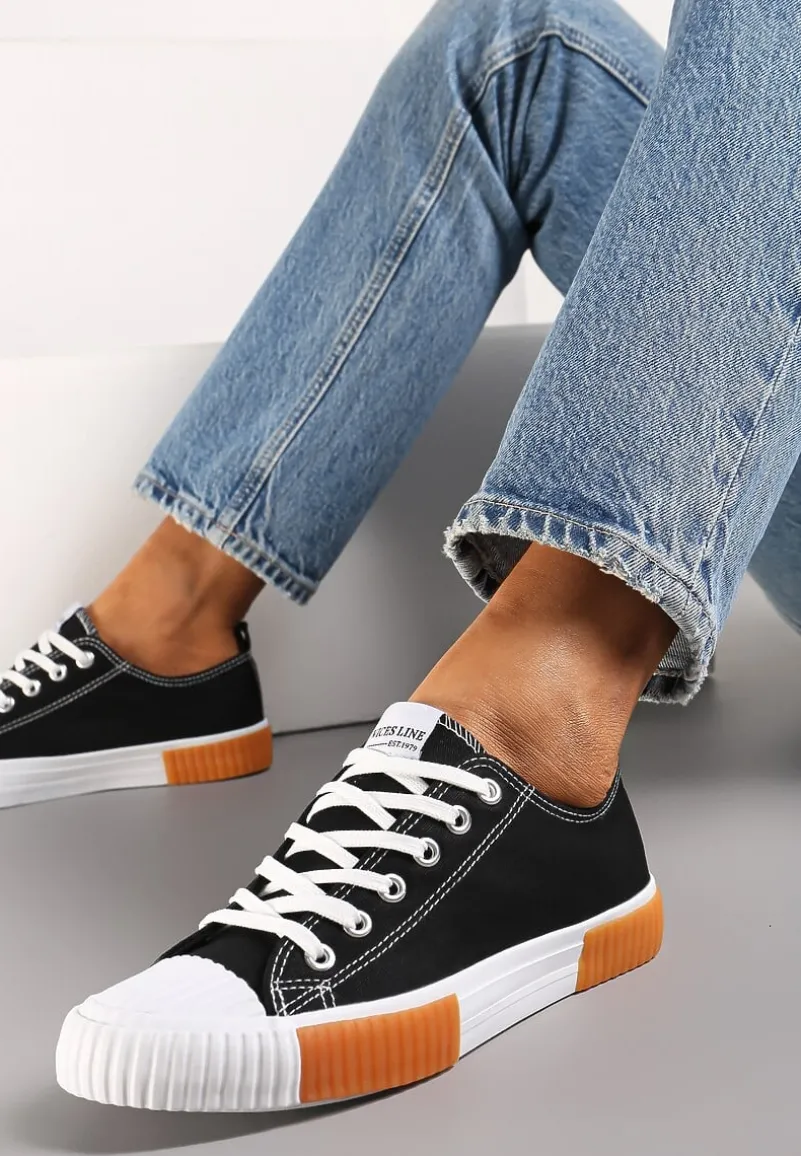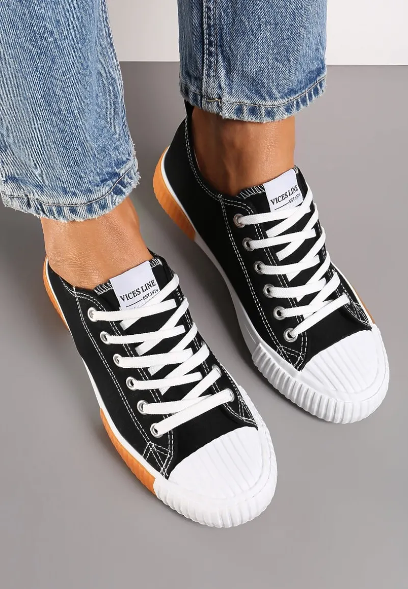 Trampki Athizephila niskie, sięgające przed kostkę. Osadzone na gumowej, białej podeszwie z pomarańczowymi wstawkami. Okrągły, gumowy nosek pokryty perforacją. Wiązane na górze na płaskie sznurowadła. Wykonane z materiału tekstylnego. Założysz je i do dzianinowego kompletu, i do casualowej sukienki albo szerokich spodni. Wybierz większy rozmiar.