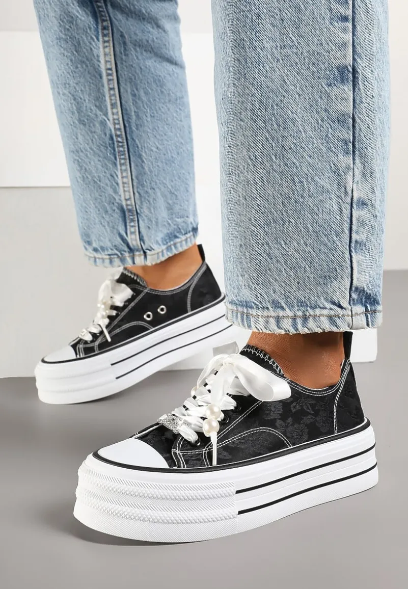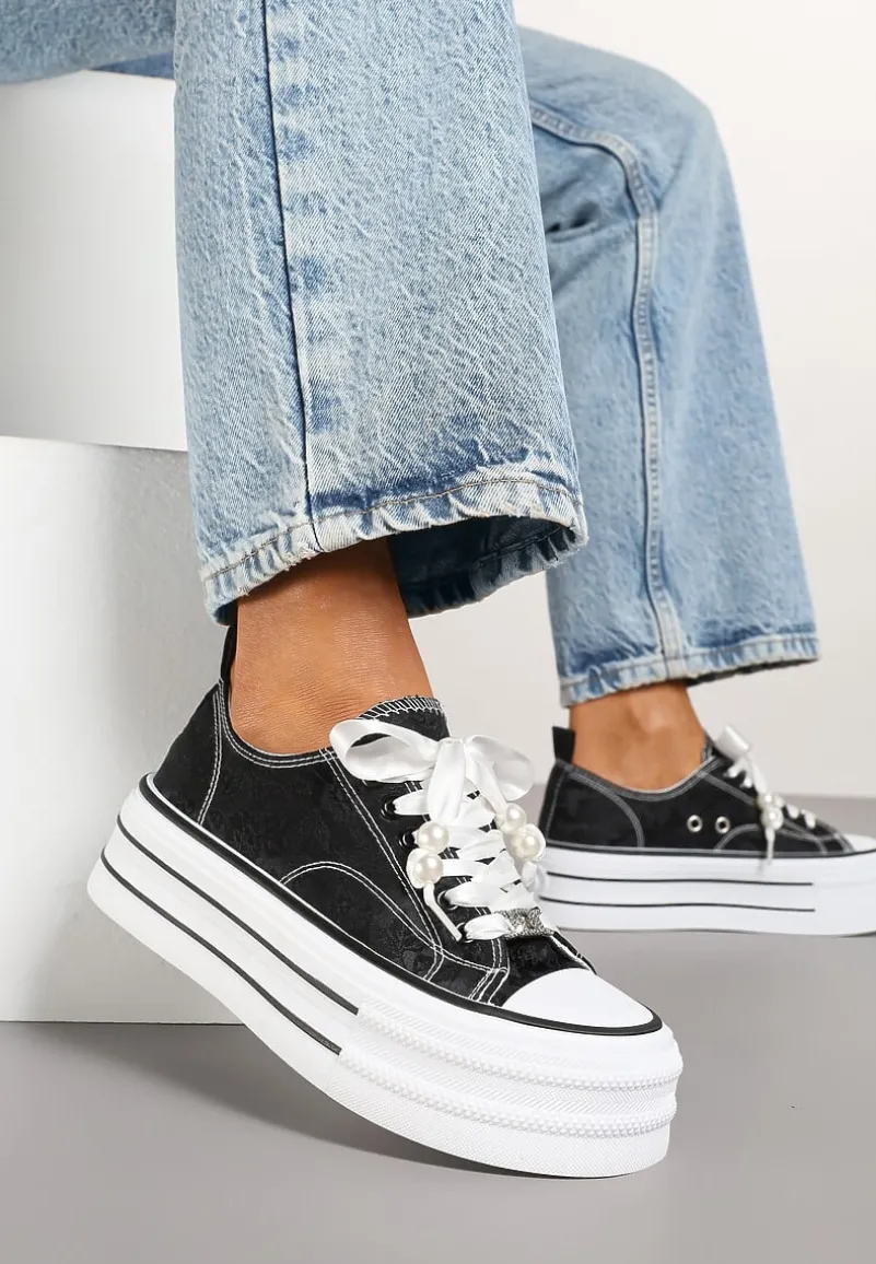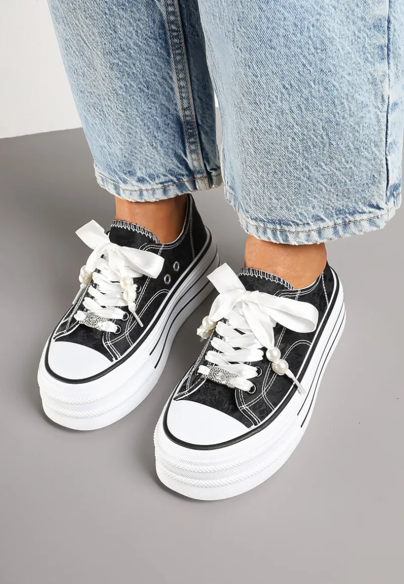 Trampki na Platformie Ozdobione Perełkami Yasami to idealne połączenie stylu dla każdej fashionistki. Ten model z platformą i noskiem okrągłym z pewnością przyciągnie spojrzenia swoim eleganckim zdobieniem w postaci perełek. Z wiązanym zapięciem doskonale pasuje do miejskich stylizacji, a dzięki platformie dodaje centymetrów wzrostu. Zestaw je z jeansową kurtką i sukienką na co dzień lub wybierz elegancką bluzkę i spódnicę na bardziej formalne okazje – w każdej sytuacji poczujesz się modnie i pewnie.