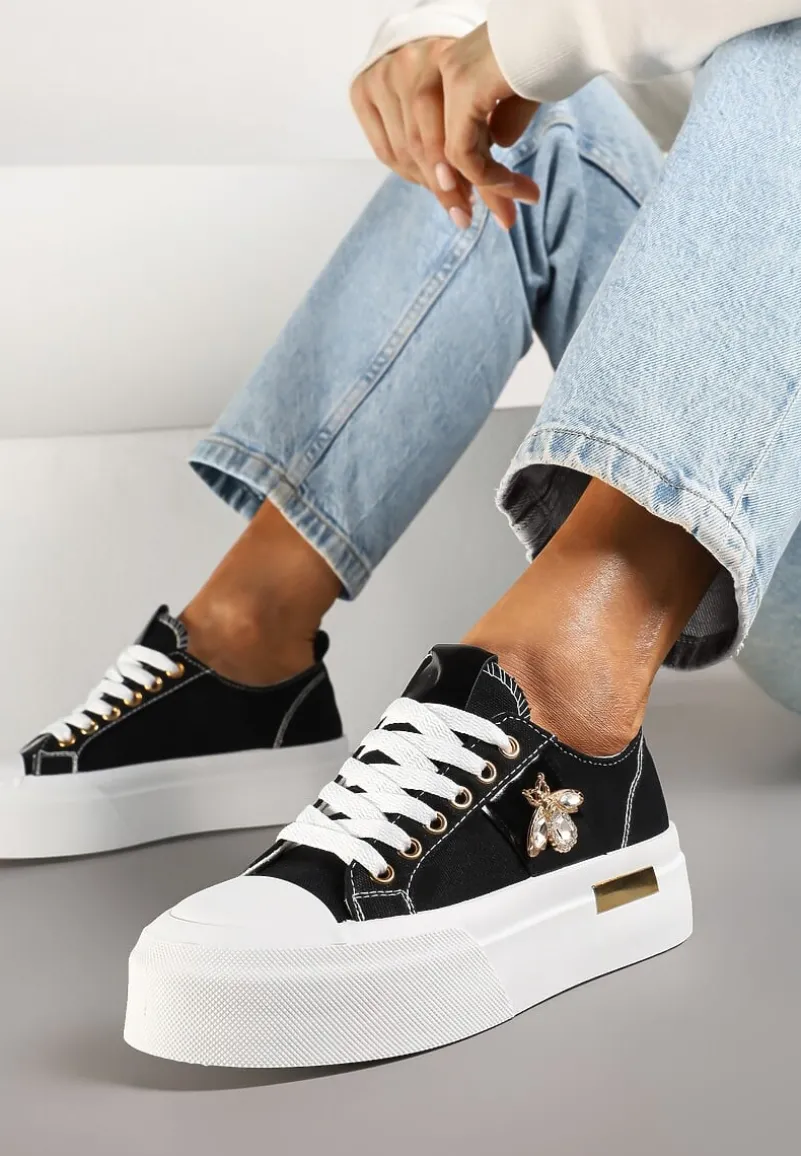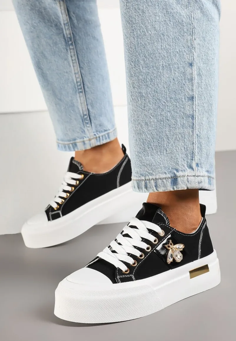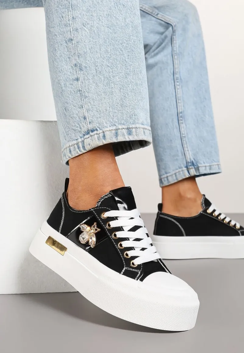 Trampki Gonessa na platformie z biżuteryjną aplikacją to must-have dla każdej modowej entuzjastki, która ceni sobie wyraziste detale. Te wyjątkowe buty o zaokrąglonym nosku są zapinane na klasyczne sznurowadła, co dodaje im niebanalnego stylu. Idealnie wpisują się w najnowsze trendy, łącząc casualowy wdzięk z nutą elegancji dzięki gustownym zdobieniom. Stylizowane z jeansami i klasycznym T-shirtem dodadzą miejskiego luzu, a zestawione z prostą sukienką i błyszczącą torebką sprawdzą się na wieczornych spotkaniach. Musisz je mieć!