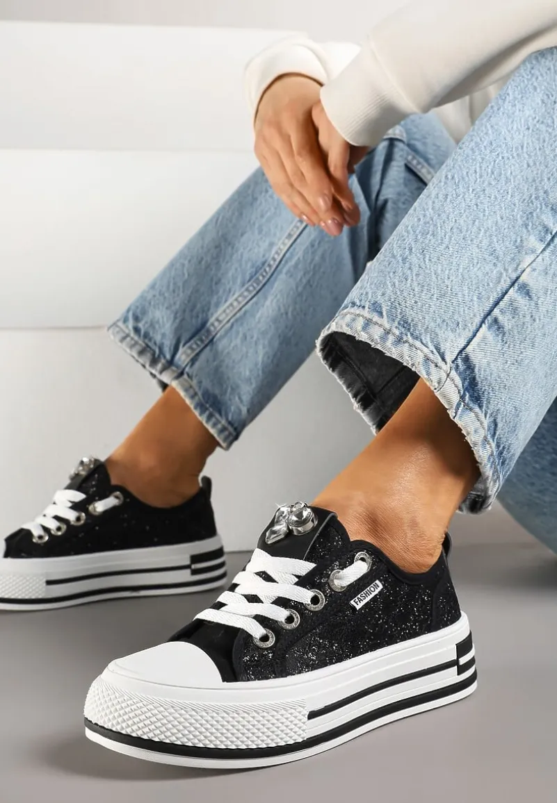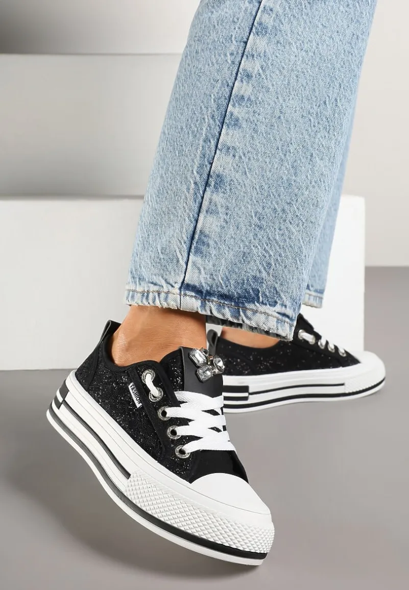 Trampki Nusilwen na platformie to idealny wybór dla kobiet, które uwielbiają wyrafinowany styl i aktualne trendy. Subtelna koronka w połączeniu z błyszczącymi cyrkoniami dodaje im elegancji, dzięki czemu świetnie sprawdzą się na co dzień, jak i podczas wieczornych wyjść. Zaokrąglony nosek i wiązanie na sznurowadła to klasyczne rozwiązania, które nigdy nie wychodzą z mody. Na co dzień połącz je z jeansami i oversize’owym swetrem.