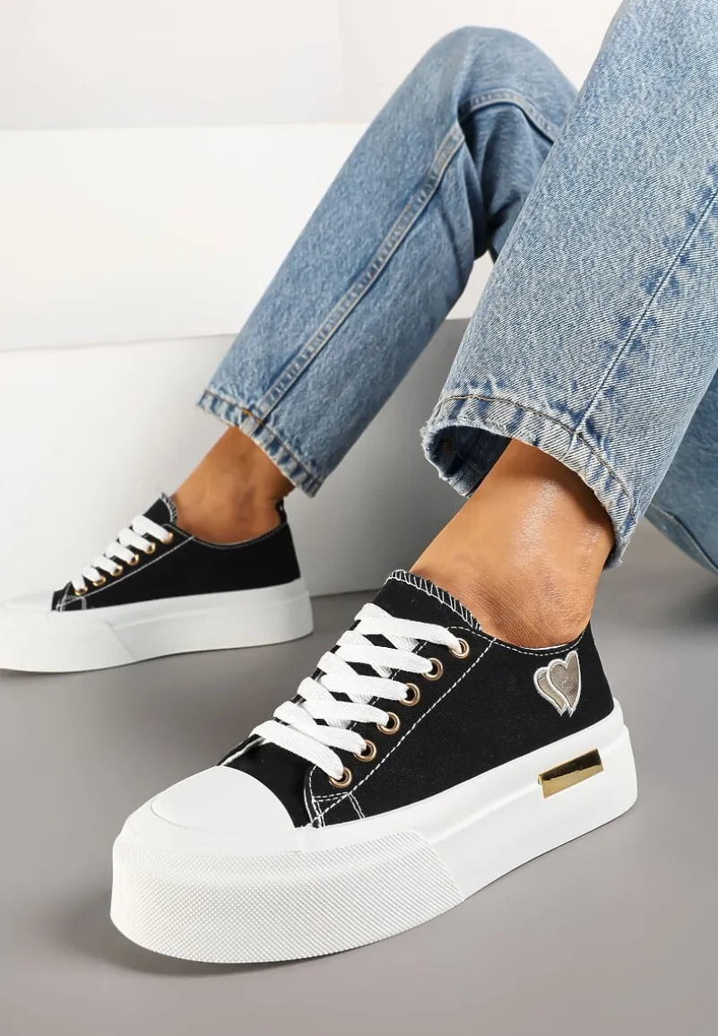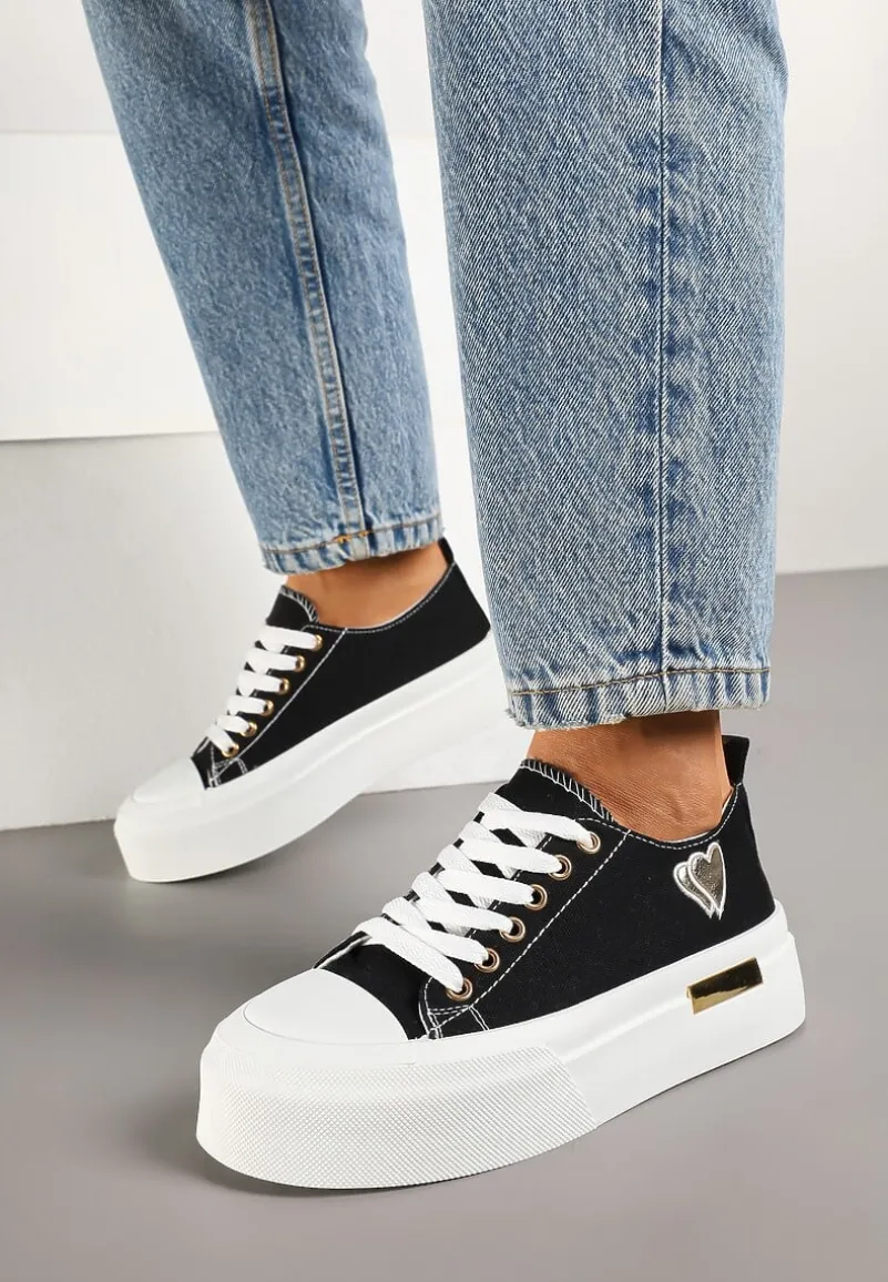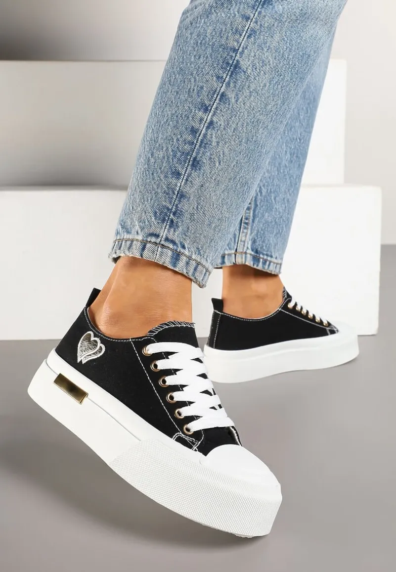 Trampki na Platformie z Metalicznymi Sercami Florvila to must-have dla każdej miłośniczki modnych detali. Platformowa podeszwa dodaje wysokości i podkreśla sylwetkę, a metaliczne serca przyciągają spojrzenia i dodają uroku każdej stylizacji. Idealnie komponują się z casualowym lookiem — załóż je do ulubionych jeansów i luźnej koszulki na spotkanie z przyjaciółmi.
