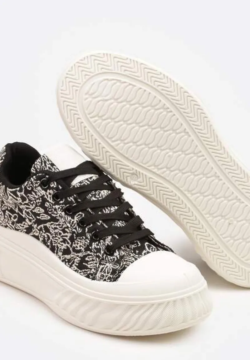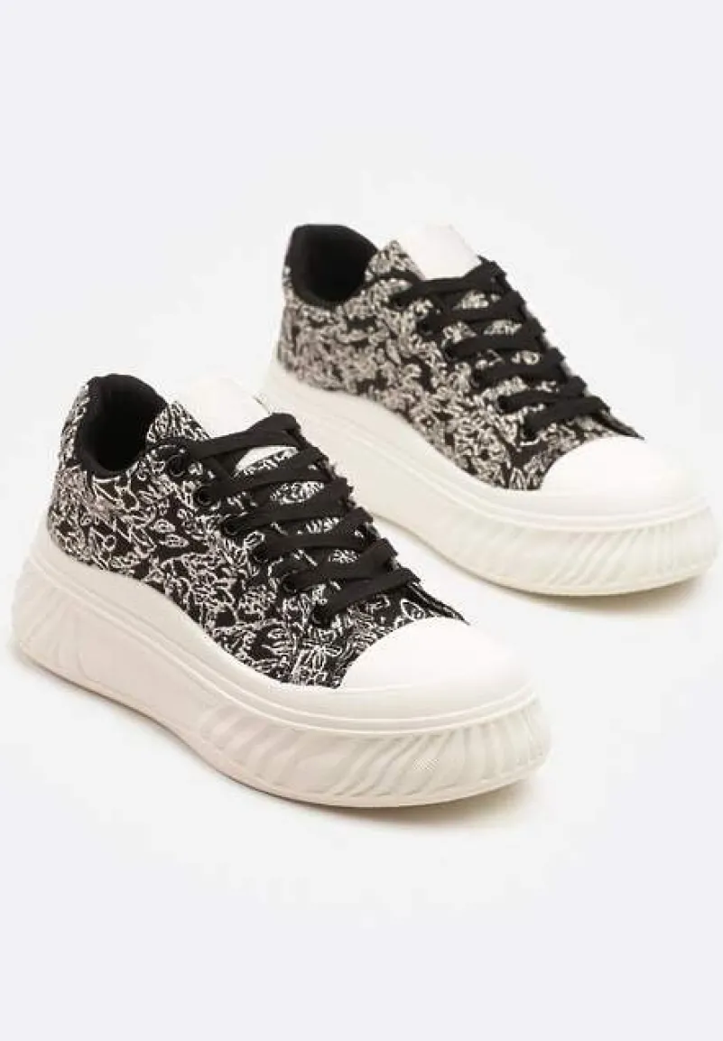 Trampki na Platformie z Tłoczeniem Ozdobione Abstrakcyjnym Wzorem Desanovia to must-have dla każdej fashionistki, która pragnie wyróżniać się z tłumu. Stylowe platformy dodają kilku centymetrów, podkreślając Twoją sylwetkę, a subtelne tłoczenie i abstrakcyjny wzór dostarczają niepowtarzalnego charakteru. Buty z okrągłym noskiem i sznurowaniem są idealne na sezon wiosenno-letni, tworząc modną bazę dla codziennych. Połącz je z jeansami i t-shirtem na spacer po mieście.