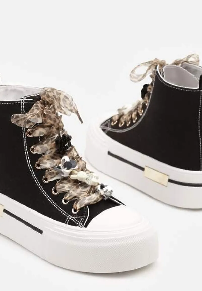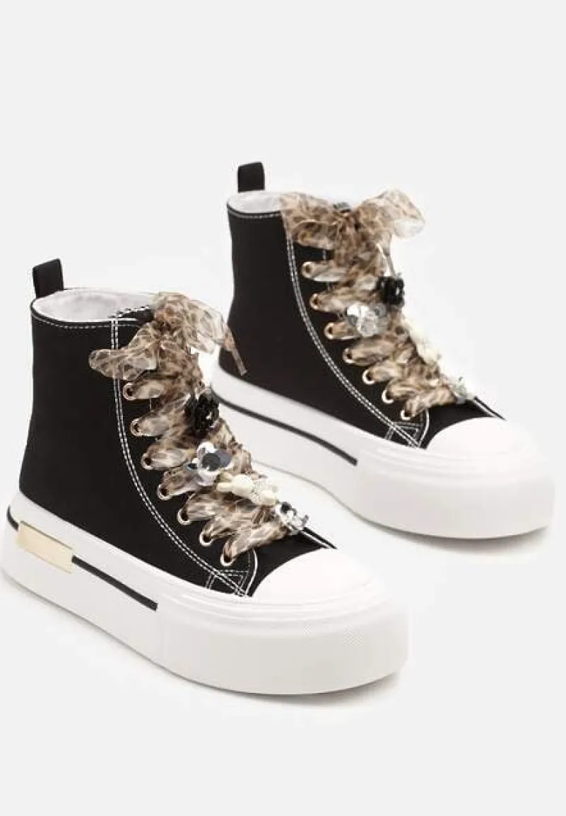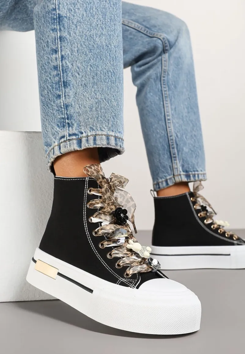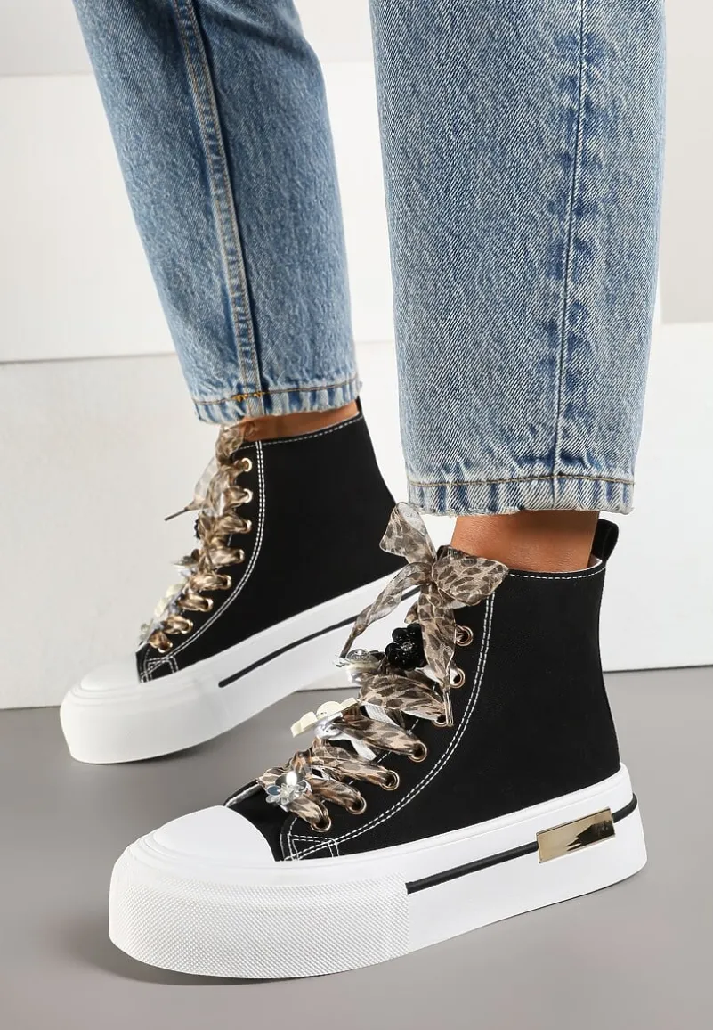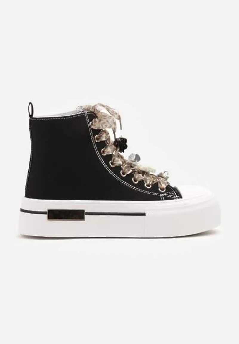 Trampki na Platformie z Wysoką Cholewką Ozdobione Cyrkoniami Fenvisa to must-have w szafie każdej fashionistki! Wysoka cholewka i platforma nie tylko dodają centymetrów, ale także zapewniają wyjątkowy styl, który przyciąga wzrok. Dekoracyjne cyrkonie to subtelny akcent, który ożywi każdą codzienną stylizację. Łącz je z oversize’ową bluzą i spodniami jogger.