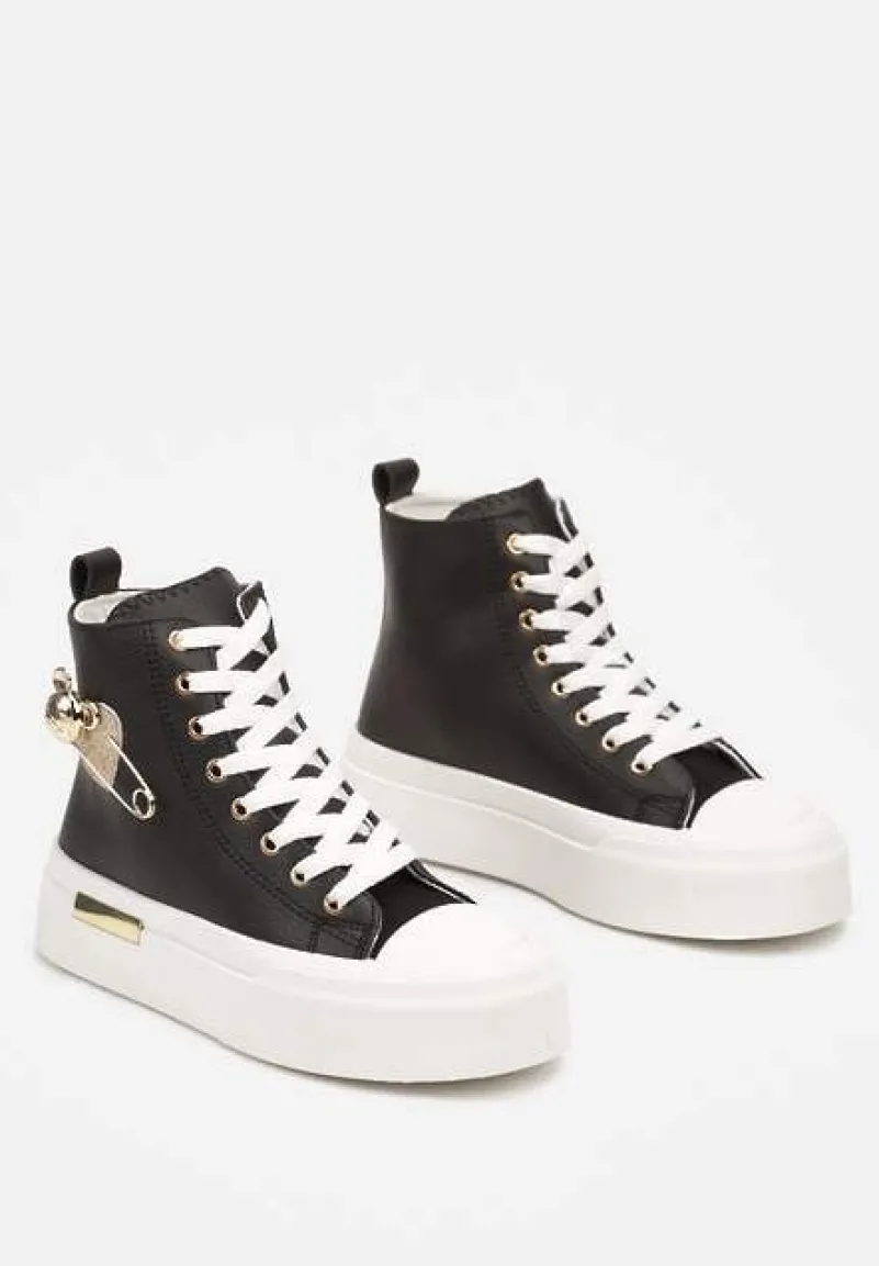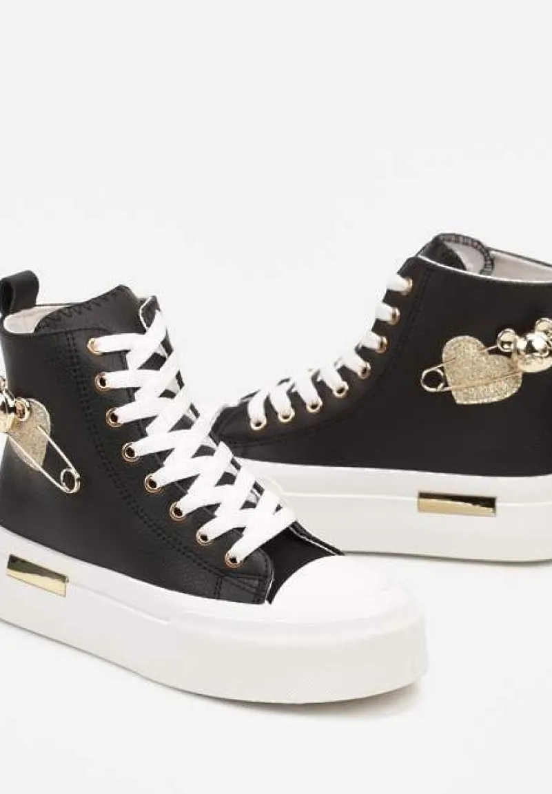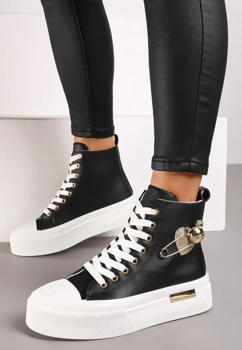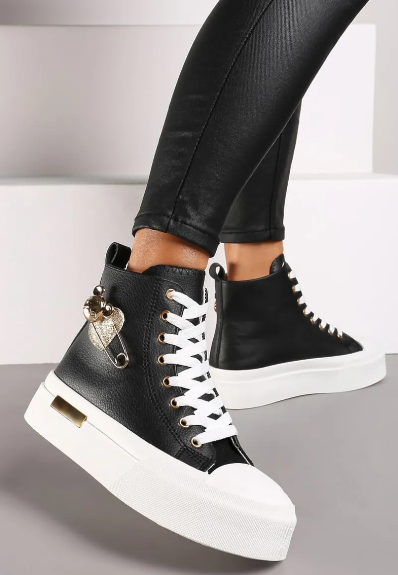 Trampki Terilaina to esencja miejskiego stylu z nutą glamour. Platforma zapewni stabilność na każdym kroku i optycznie wydłuży nogi. Są idealne do codziennych stylizacji – świetnie skomponują się z luźnymi boyfriend jeansami i oversize’owym swetrem. Na wieczorne wyjścia dodaj tylko krótką spódniczkę i ramoneskę, a brokatowa broszka dołoży twój look odpowiedniego blasku!