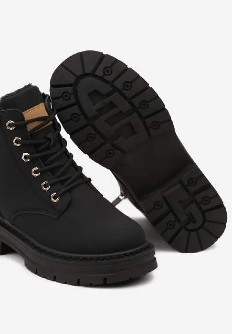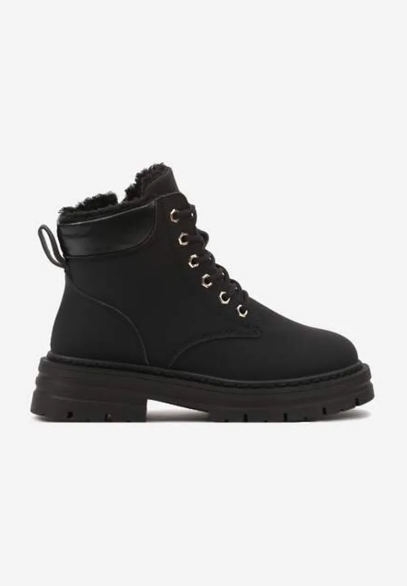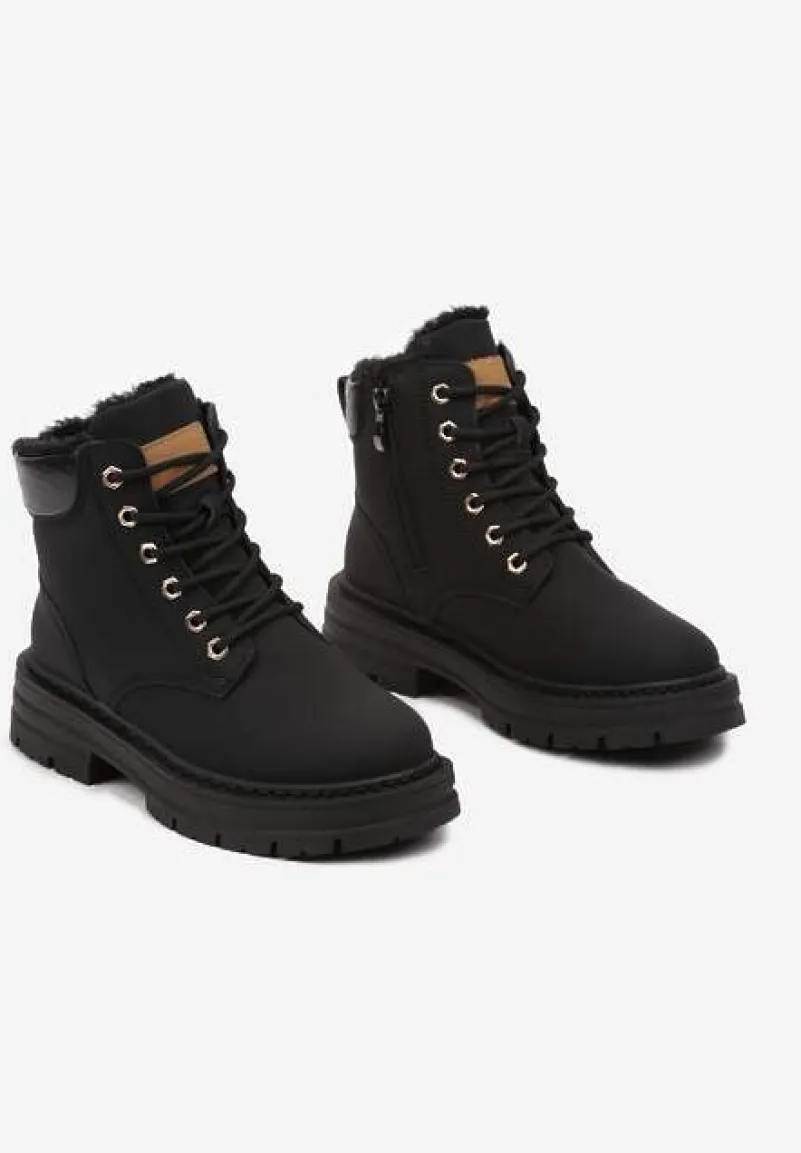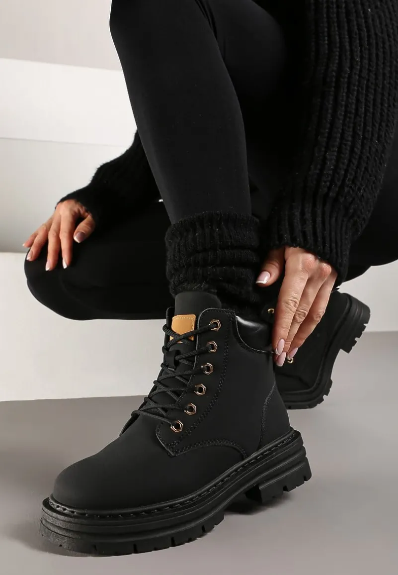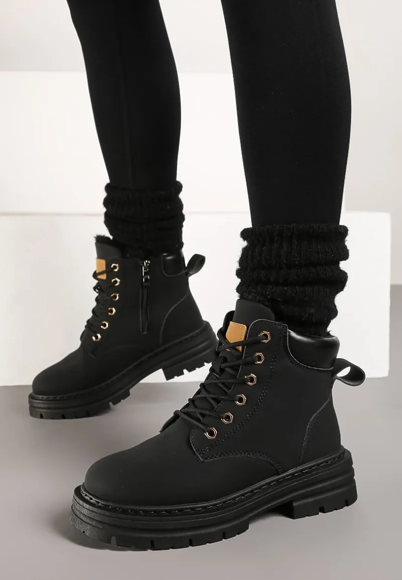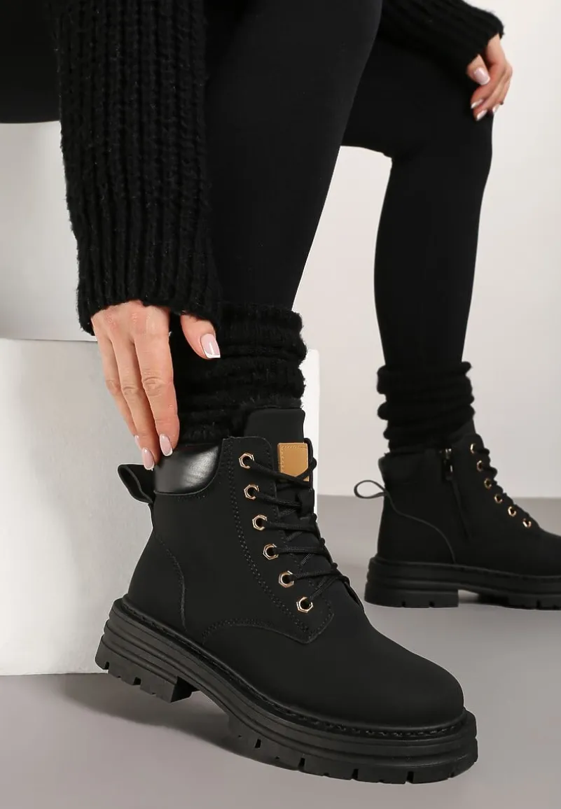 Traperki Toriga to kwintesencja stylu połączonego z funkcjonalnością. Tłoczona podeszwa zapewnia stabilność, a płaski obcas gwarantuje komfort noszenia. Futrzana wyściółka sprawdzi się w chłodne dni, a zapięcie na suwak ułatwi zakładanie. Zaokrąglone noski i solidne sznurowanie to gwarancja modnego wyglądu i praktyczności, a uniwersalny design sprawia, że traperki świetnie komponują się zarówno z jeansami i oversizowym swetrem na codzienne wyjścia, jak i ze skórzaną kurtką dla rockowego sznytu podczas wieczornych spotkań. Zaleca się wybór większego rozmiaru.