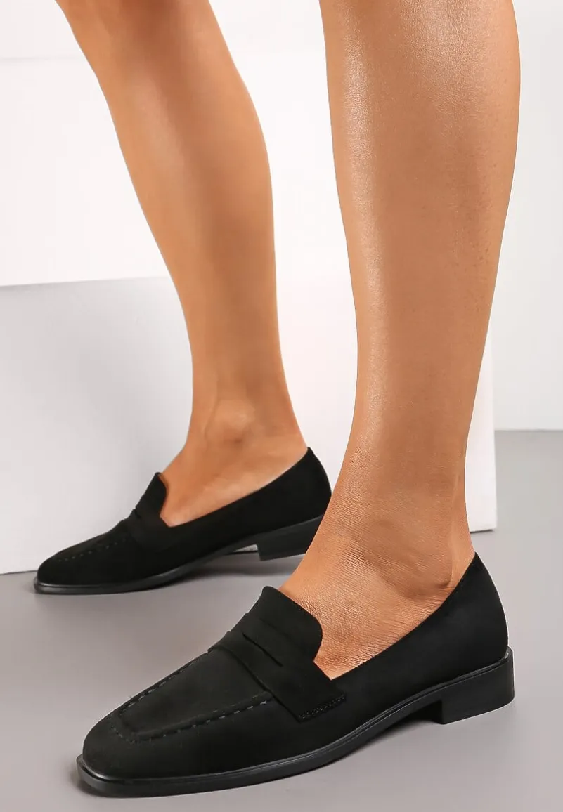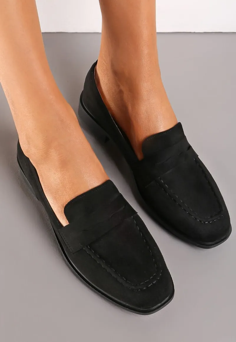 Wsuwane mokasyny Firana z cholewką z ekozamszu i przeszyciami z przodu. Osadzone na płaskiej podeszwie. To niezbędny element każdej kobiecej garderoby!