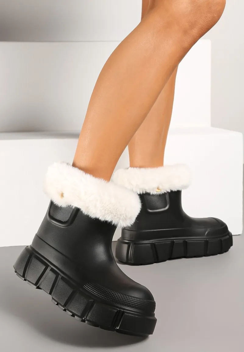 Wsuwane Śniegowce Tarvia z odpinanym futerkiem to połączenie stylu i funkcjonalności. Zrobione na podeszwie z masywnym obcasem, idealnie sprawdzą się w chłodniejsze dni. Eleganckie zdobienia dodają im wyjątkowego charakteru. Wybierz je na wypad za miasto z jeansami i swetrem lub zestaw ze spódnicą midi i futrzanym płaszczem na wieczorne wyjście.