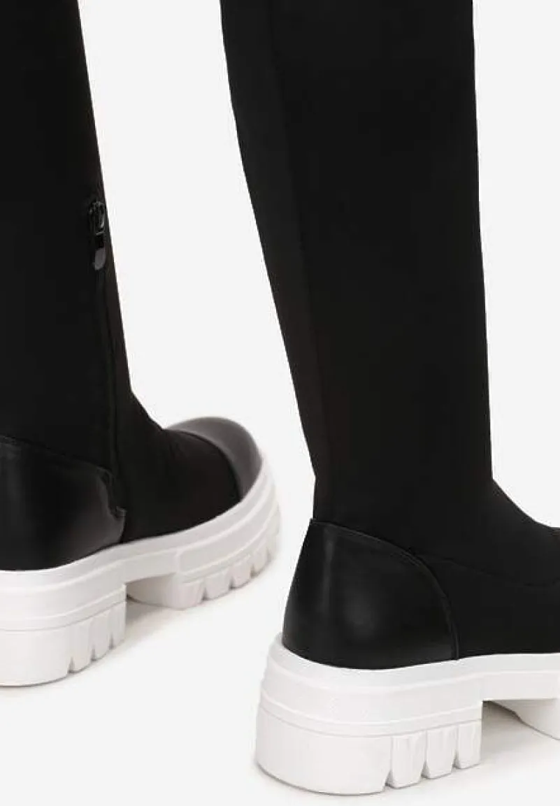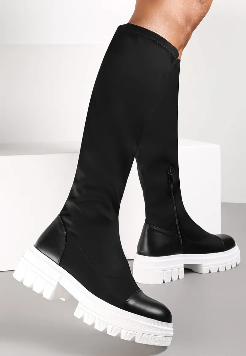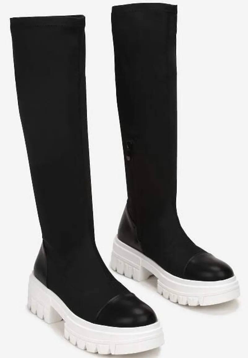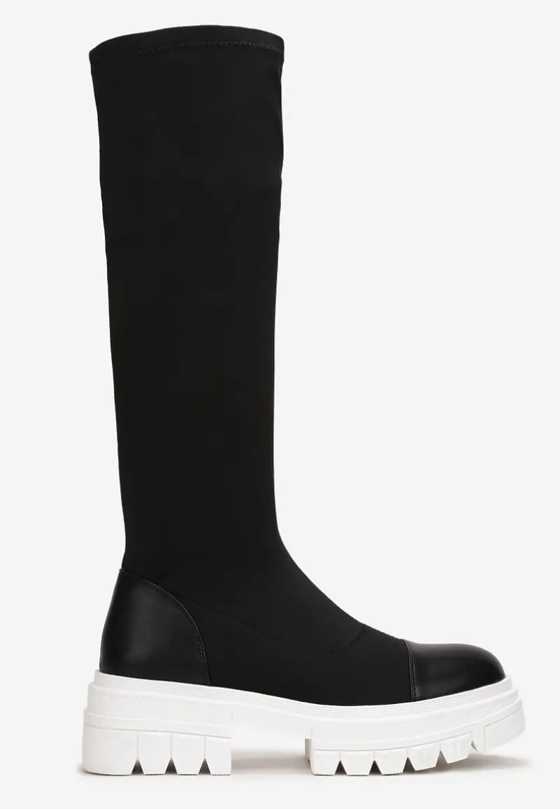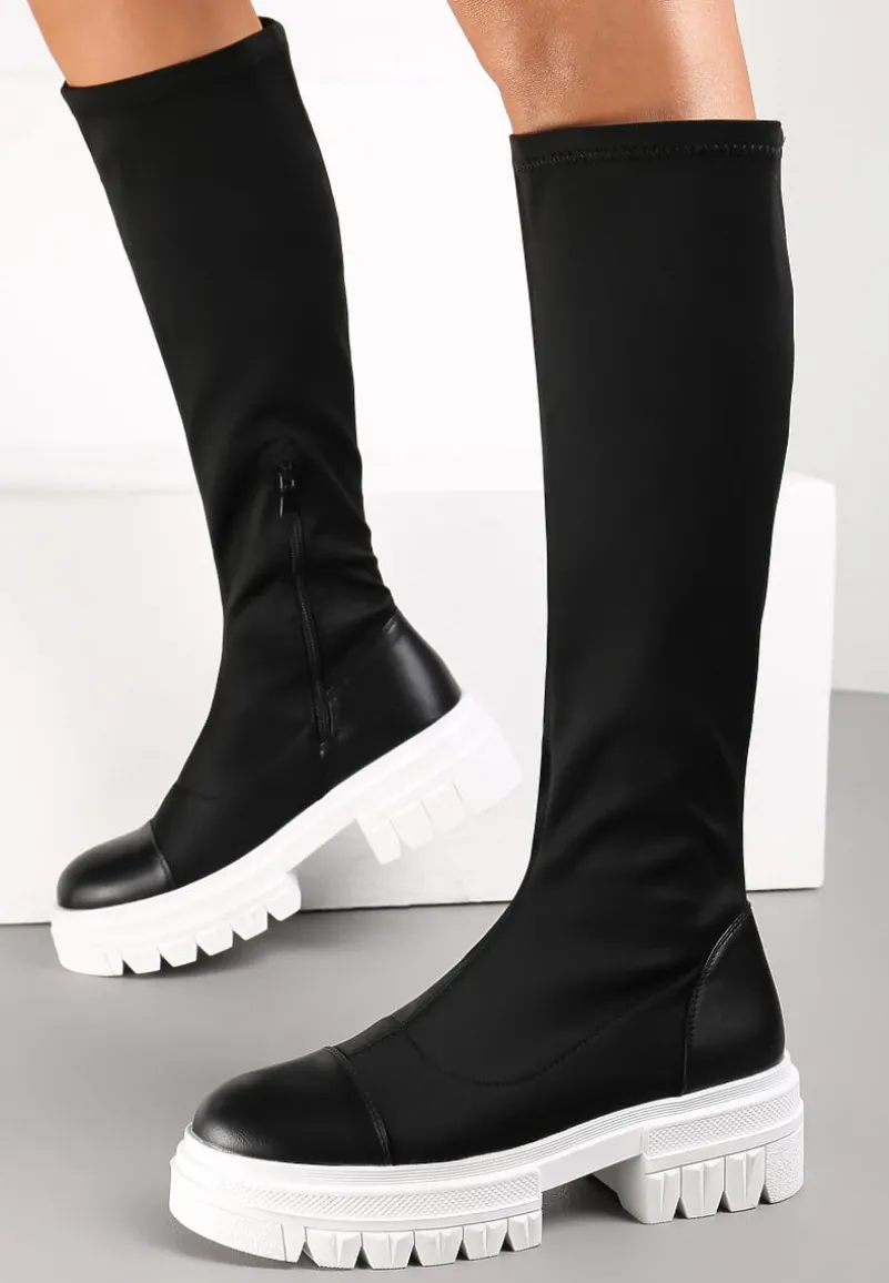 Kozaki Gode na grubej podeszwie z modnymi żłobieniami. Dopasowana cholewka sięga do kolana i ma wszyty suwak. Kozaki Gode będą doskonałe jesienią i wczesną zimą.