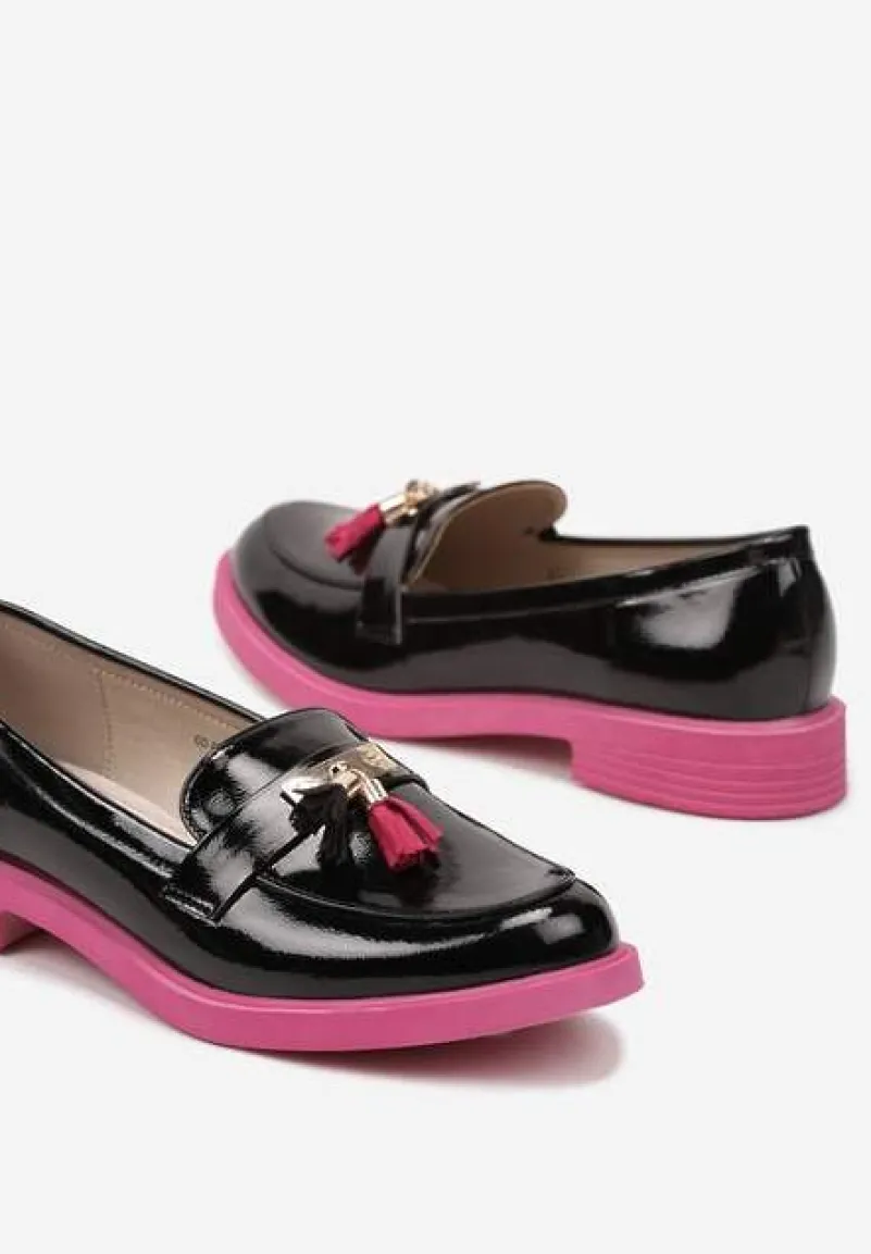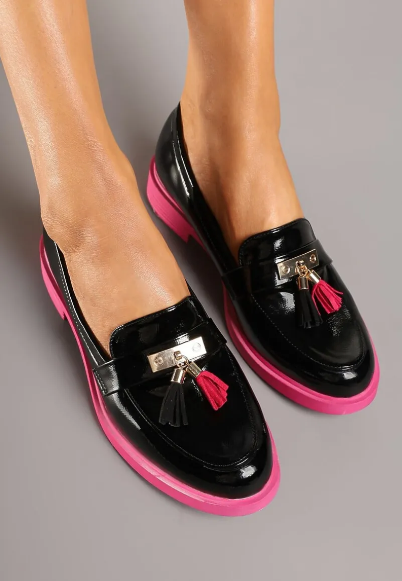 Mokasyny lakierowane Ridanitha to idealny wybór dla modnych kobiet, które cenią sobie oryginalne detale i stylowe akcenty. Charakteryzują się płaskim obcasem i eleganckim, zaokrąglonym noskiem, co sprawia, że są niezwykle wszechstronne. Frędzle dodają im szyku, czyniąc je świetnym dodatkiem. Wybierz je na co dzień w połączeniu z jasnymi jeansami i oversizowym swetrem, lub na formalne okazje z klasyczną ołówkową spódnicą i jedwabną bluzką.