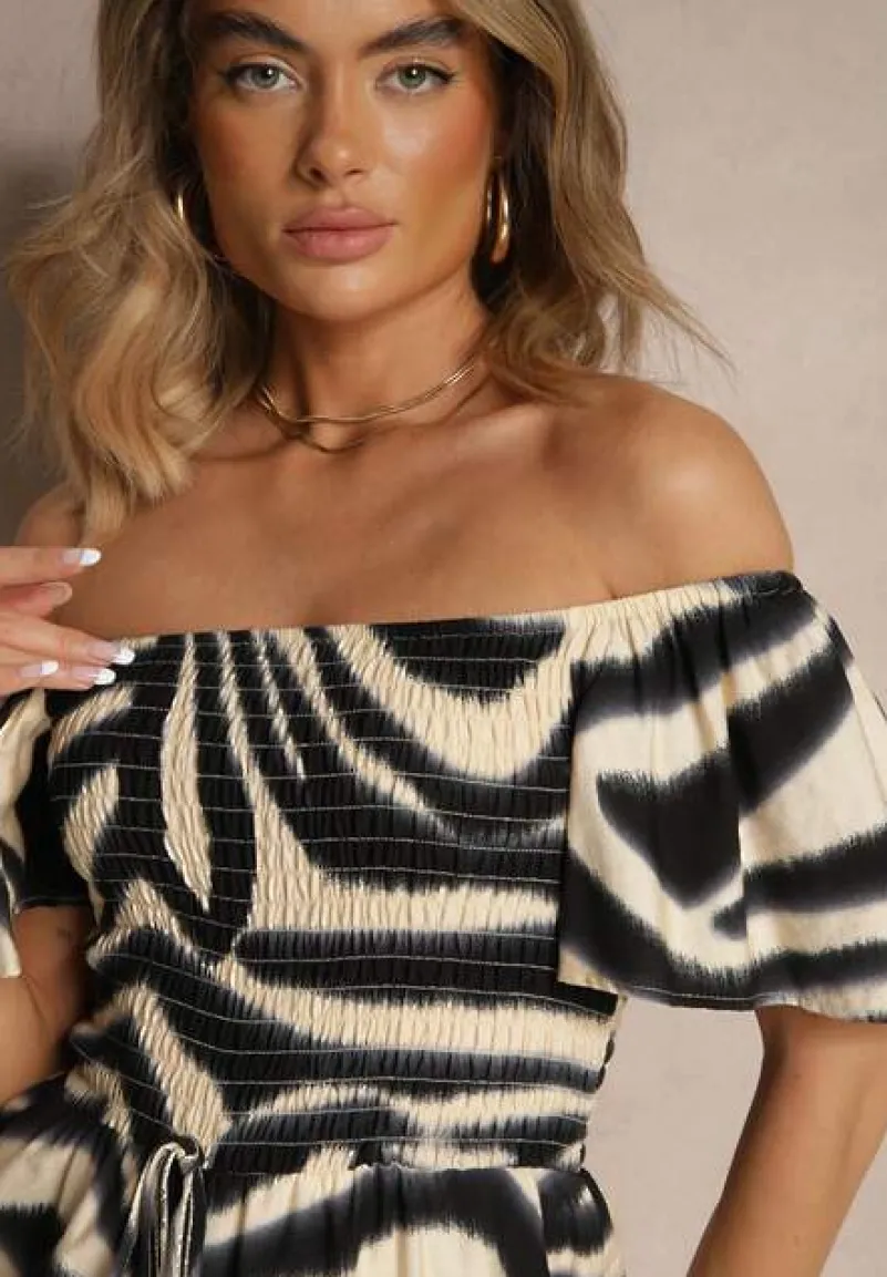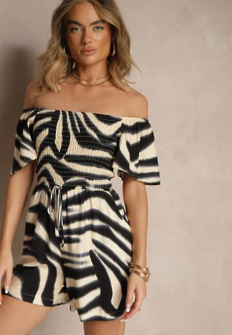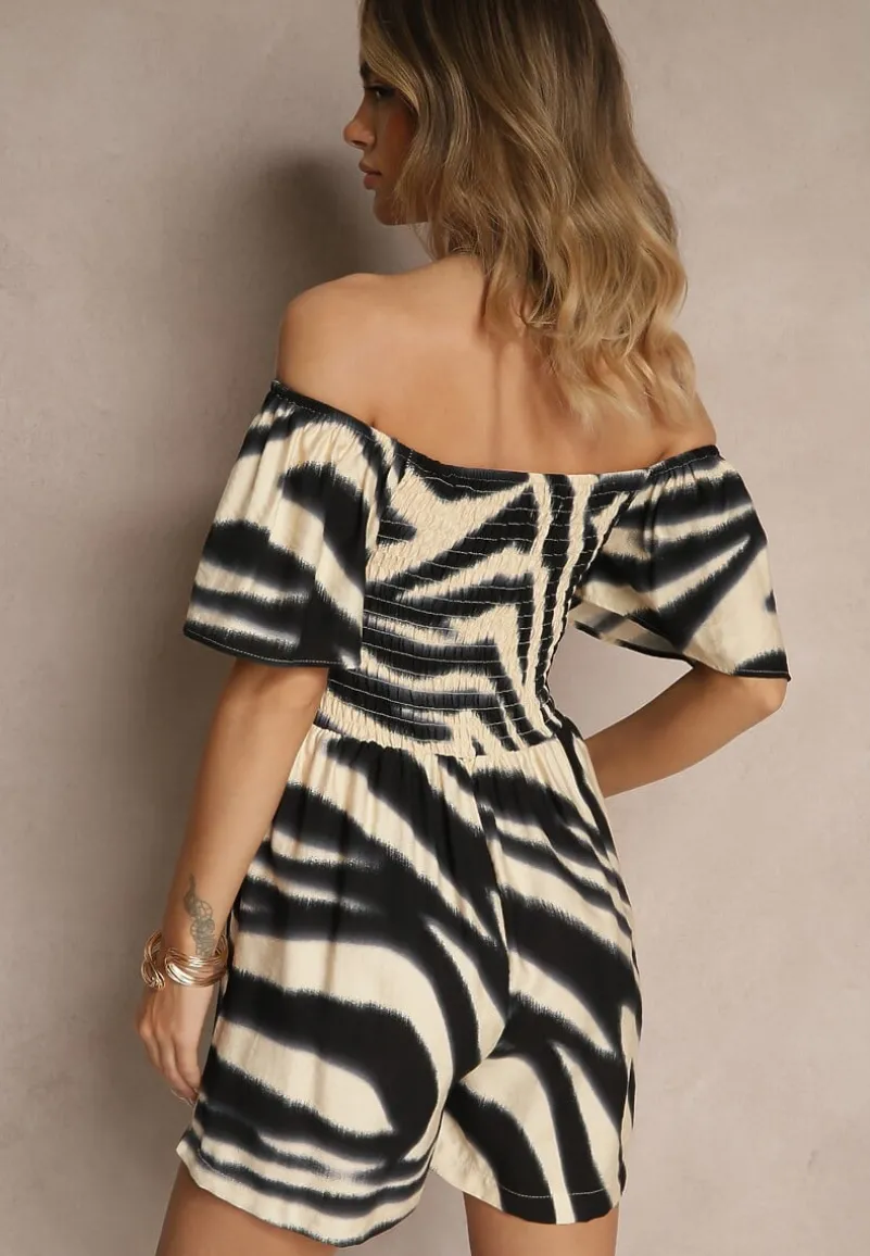 Czarny Kombinezon z Wiskozy w Abstrakcyjny Wzór Filisena