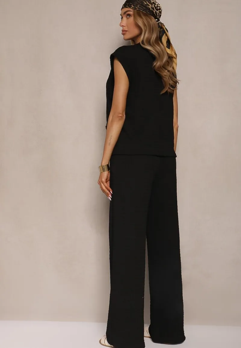 Komplet Bluzka o Fasonie Kamizelki z Ozdobnymi Broszkami i Spodnie Sadessae to doskonały wybór dla kobiet, które podążają za najnowszymi trendami modowymi. Fason bluzki przypominający kamizelkę doskonale eksponuje sylwetkę, natomiast ozdobne broszki dodają całości uroku. Spodnie o luźnym kroju z gumką w talii zapewniają komfort i swobodę ruchów. Zestaw Sadessae świetnie sprawdzi się zarówno na co dzień, gdy połączysz go z ulubionymi sneakersami i dużą torbą, jak i na formalne wyjścia, gdy dodasz szpilki i elegancką kopertówkę. Efekt wow gwarantowany!