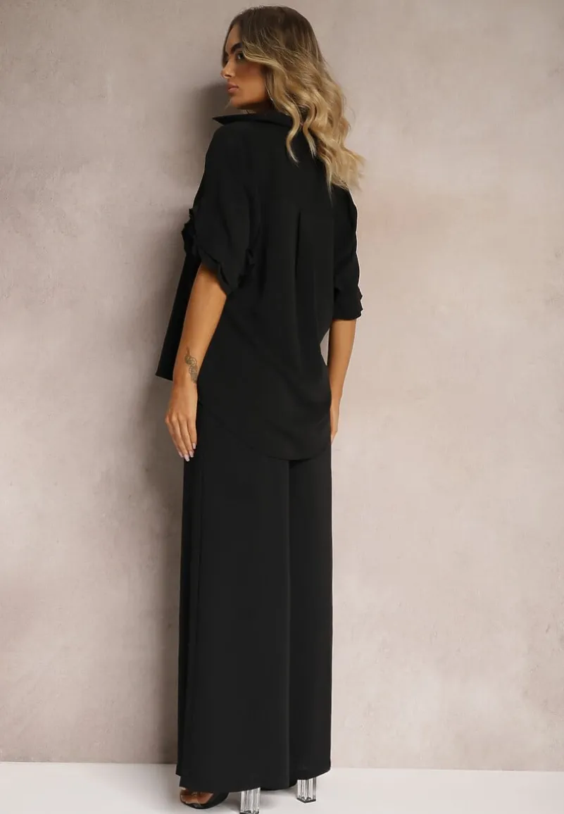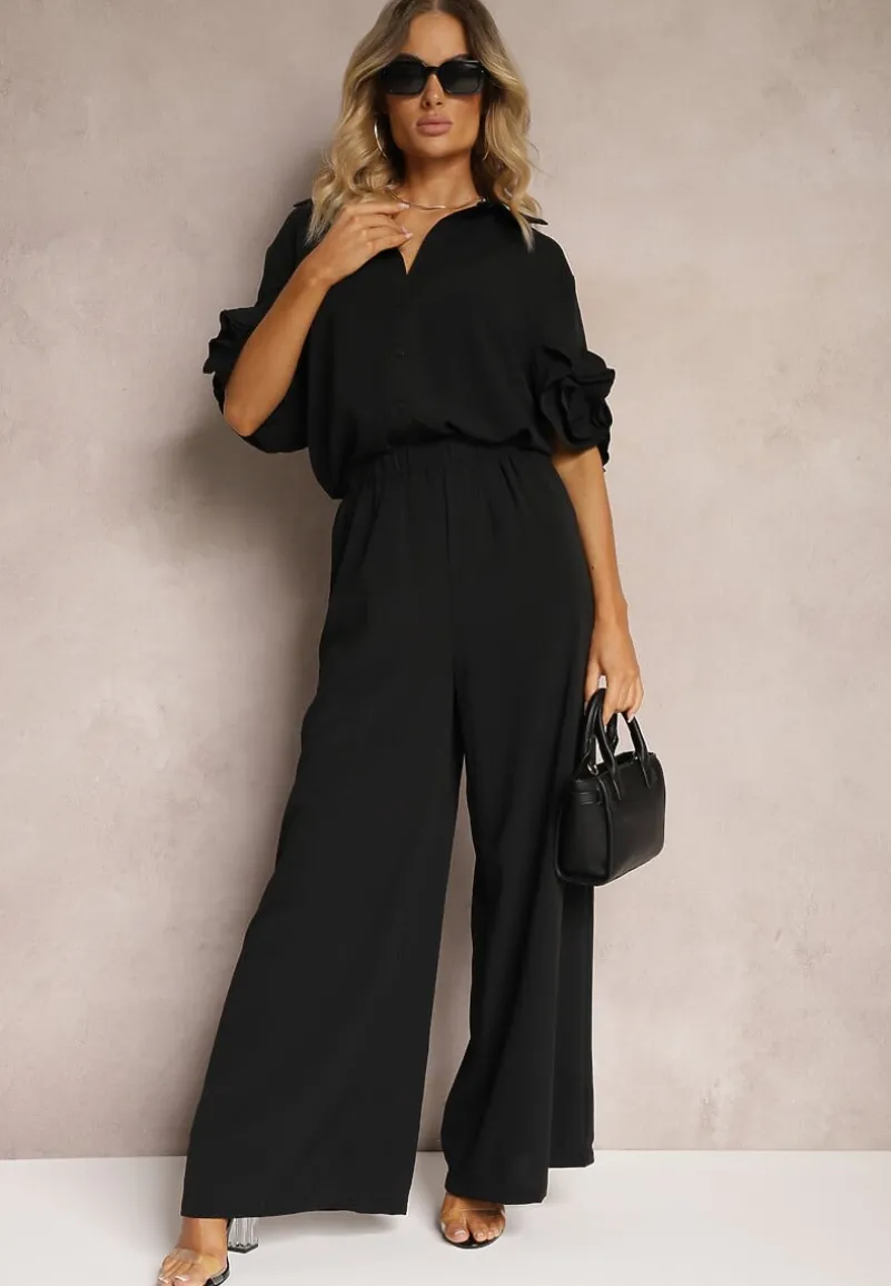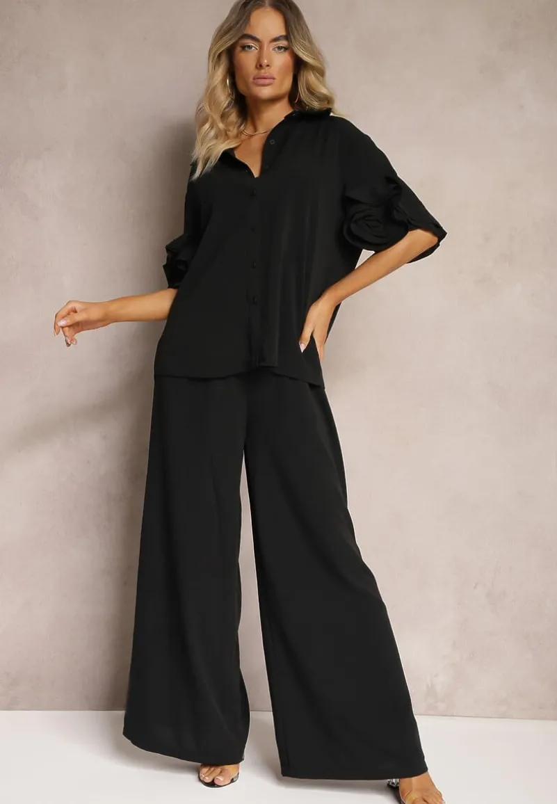 Komplet Rivathins to kwintesencja kobiecej elegancji w luźnym wydaniu. Szerokie spodnie idealnie komponują się z lekką koszulą z falbanami, nadając całości subtelnej swobody. Zaprojektowany z myślą o długich nogawkach oraz rękawach, model ten stworzy idealny look zarówno na codzienne wyjścia, jak i bardziej formalne okazje. Wyobraź sobie ten komplet zestawiony z balerinami i dużą, stylową torbą na dzień, lub z wysokimi obcasami i minimalistycznymi dodatkami na wieczór. Spraw, by każdy dzień był wyjątkowy, a zarazem szykownym z kompletem Rivathins!