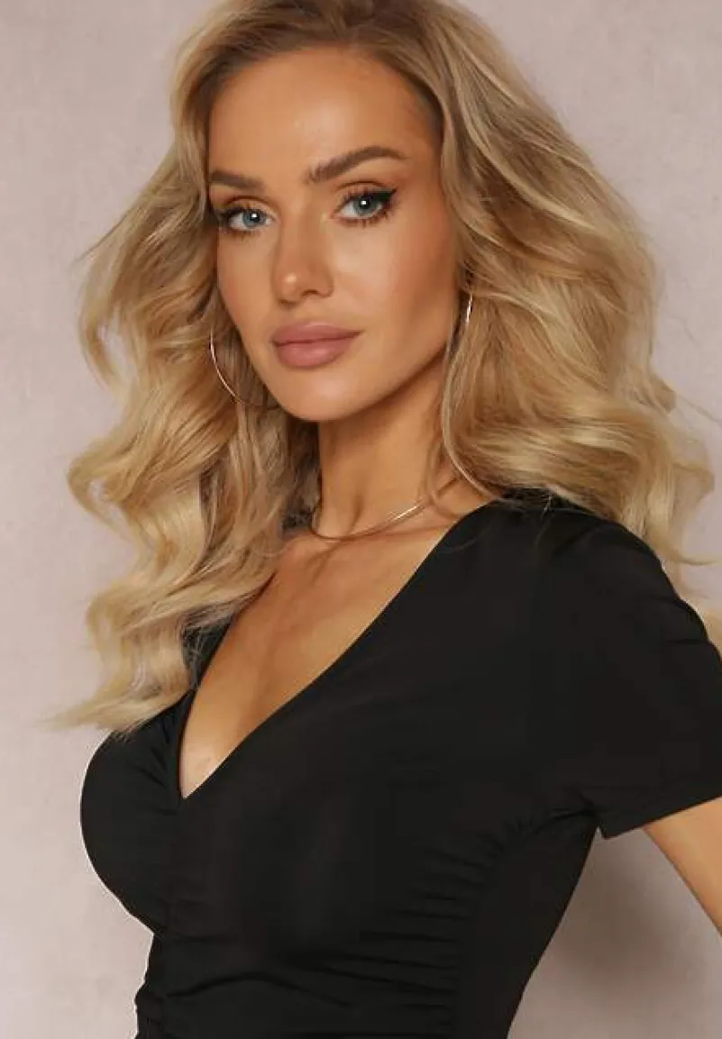 T-shirt Kedne z trójkątnym dekoltem, zdobiony drapowaniem.