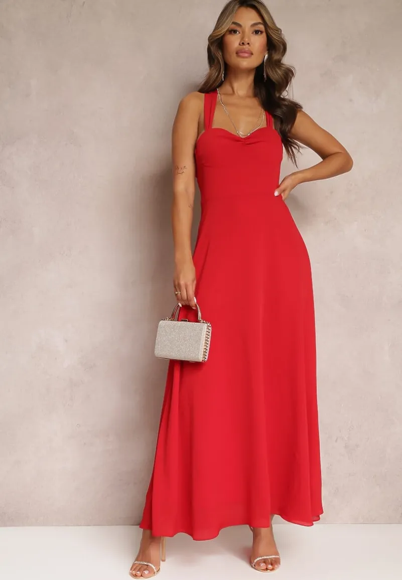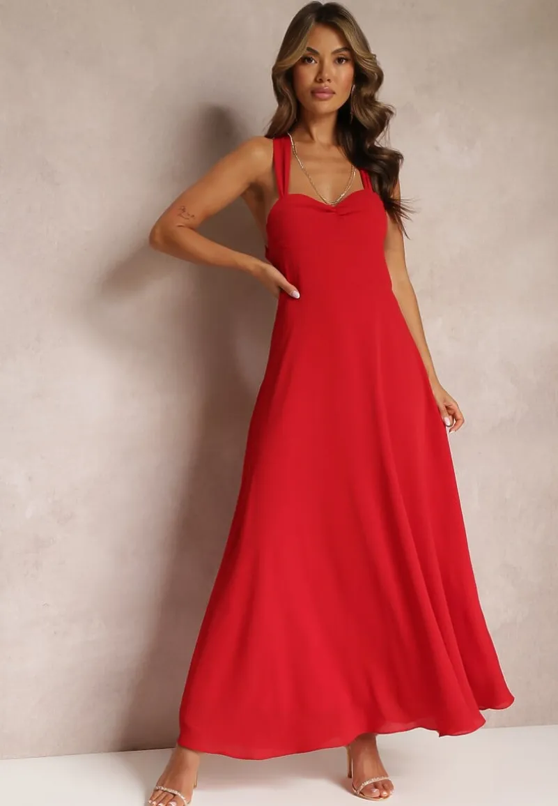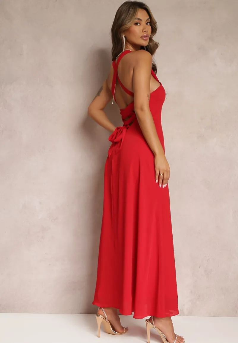 Elegancka sukienka z wiązaniem z tyłu i suwakiem, podsiada podszewkę.