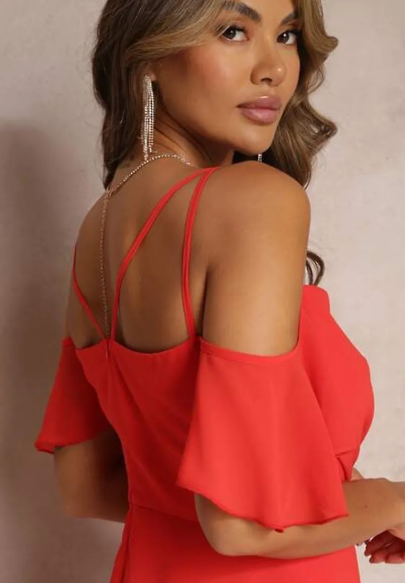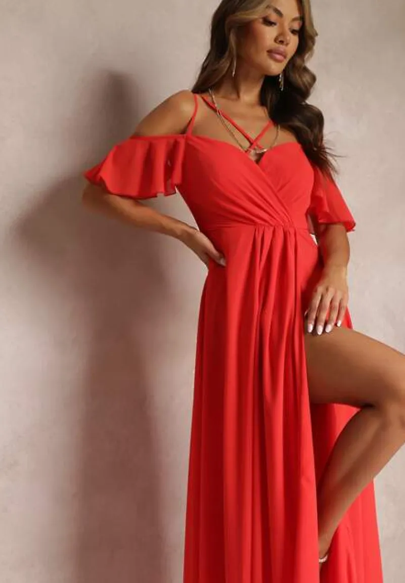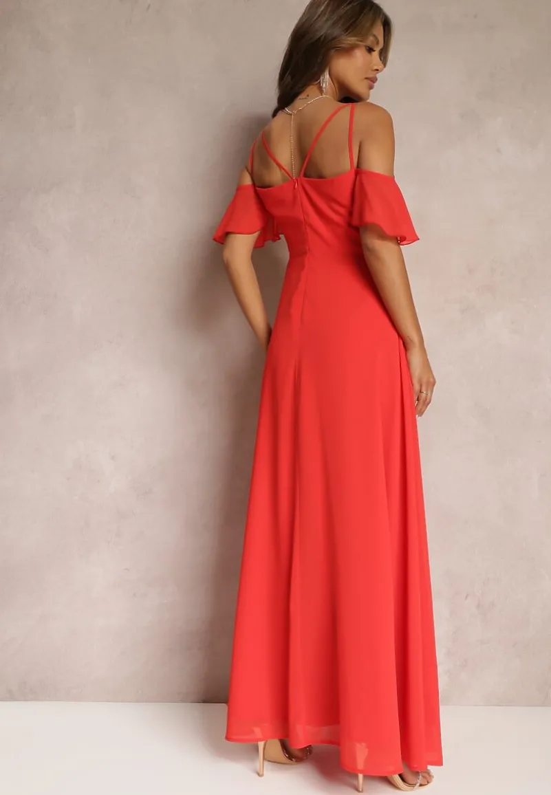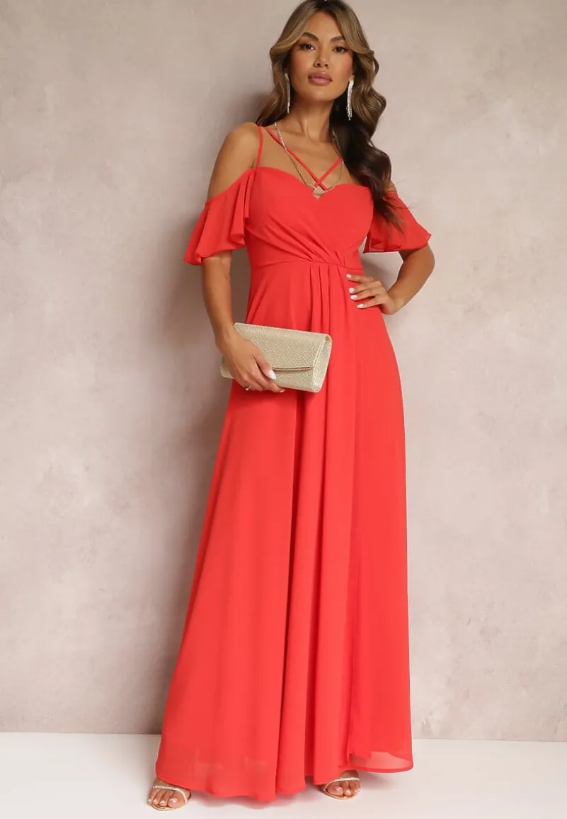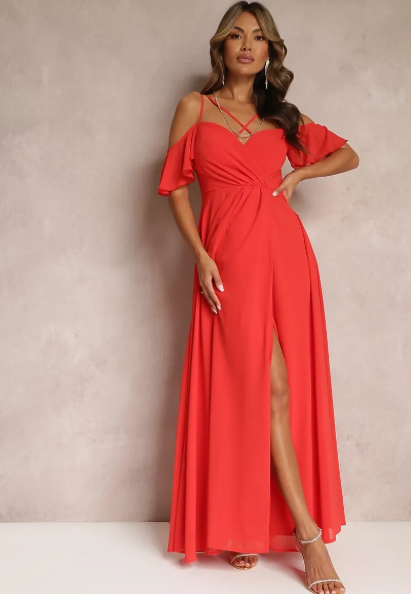 Sukienka Burwena z głębokim, kopertowym dekoltem. Posiada cieniutkie, krzyżujące się na plecach ramiączka. Długość maxi, posiada podszewkę.