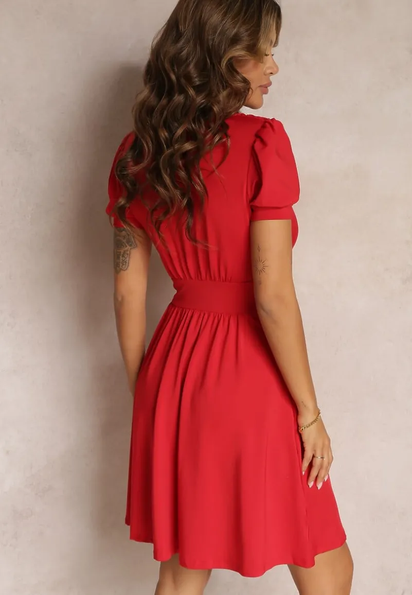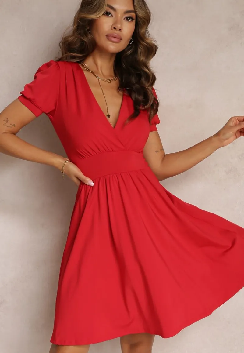 Sukienka Agamia mini, z krótkimi rękawami. W ramiona wszyto poduszki nadające elegancji. Z kopertowym dekoltem. Polecana dla kobiet z dużym biustem. Rozkloszowana, z zaznaczoną linią pasa. Wykonana z jednokolorowej dzianiny, bez podszewki. Ta sukienka prezentuje się obłędnie w komplecie z sandałkami na wysokim słupku! Dobierz do niej biżuterię z kolekcji renee.