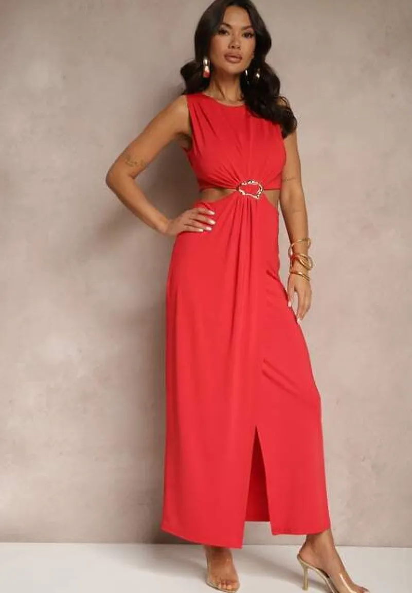 Sukienka Odivane z wiskozą z linii podkreślającej sylwetkę to modny must-have dla kobiet, które lubią czuć się pewnie. Okrągły dekolt i metalowa ozdoba dodają jej elegancji, a wycięcia po bokach nadają subtelności. Idealna na wieczorne wyjścia czy koktajl party, doskonale łączy się z sandałami na obcasie i minimalistyczną biżuterią.