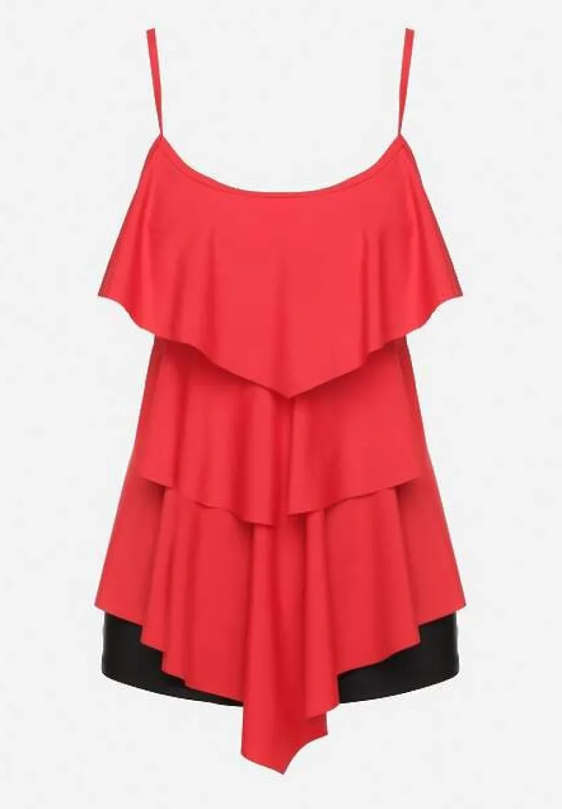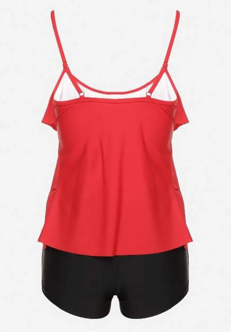 Czerwone Bikini Majtki w Stylu Szortów i Góra z Falbankami Kinerisela