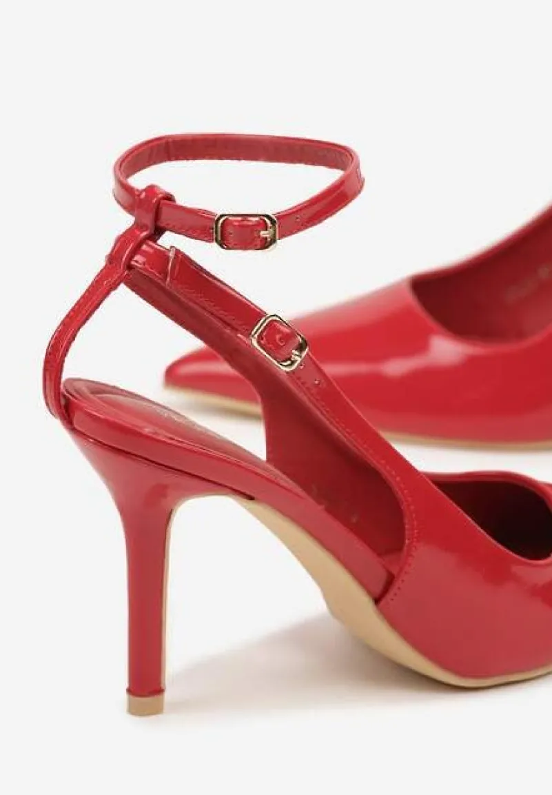 Czerwone Sandały Lakierowane Vices na Szpilce Typu Slingback Dolenita
