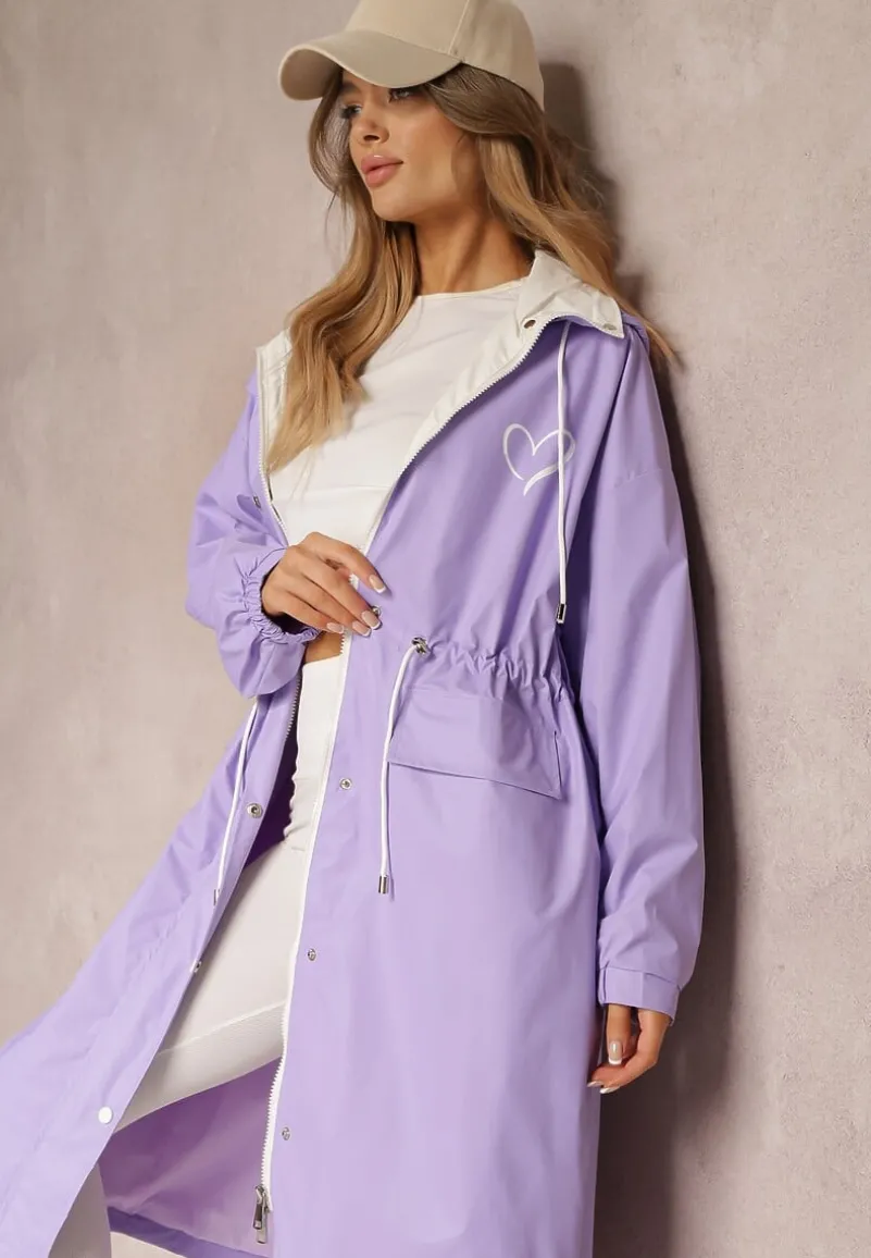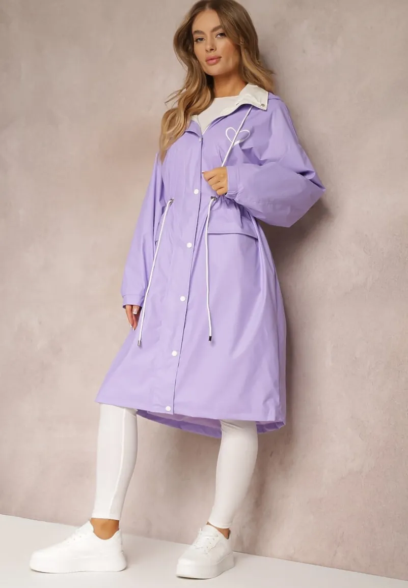 Przeciwdeszczowy płaszcz Maiar z nieodpinanym kapturem. Wiązany w pasie sznurkiem ze stoperami. Zapinany na zamek błyskawiczny ukryty pod plisą na napy. Modny płaszcz Maiar sprawdzi się przy zmiennej pogodzie.