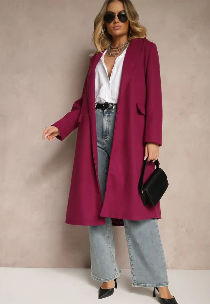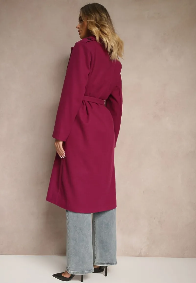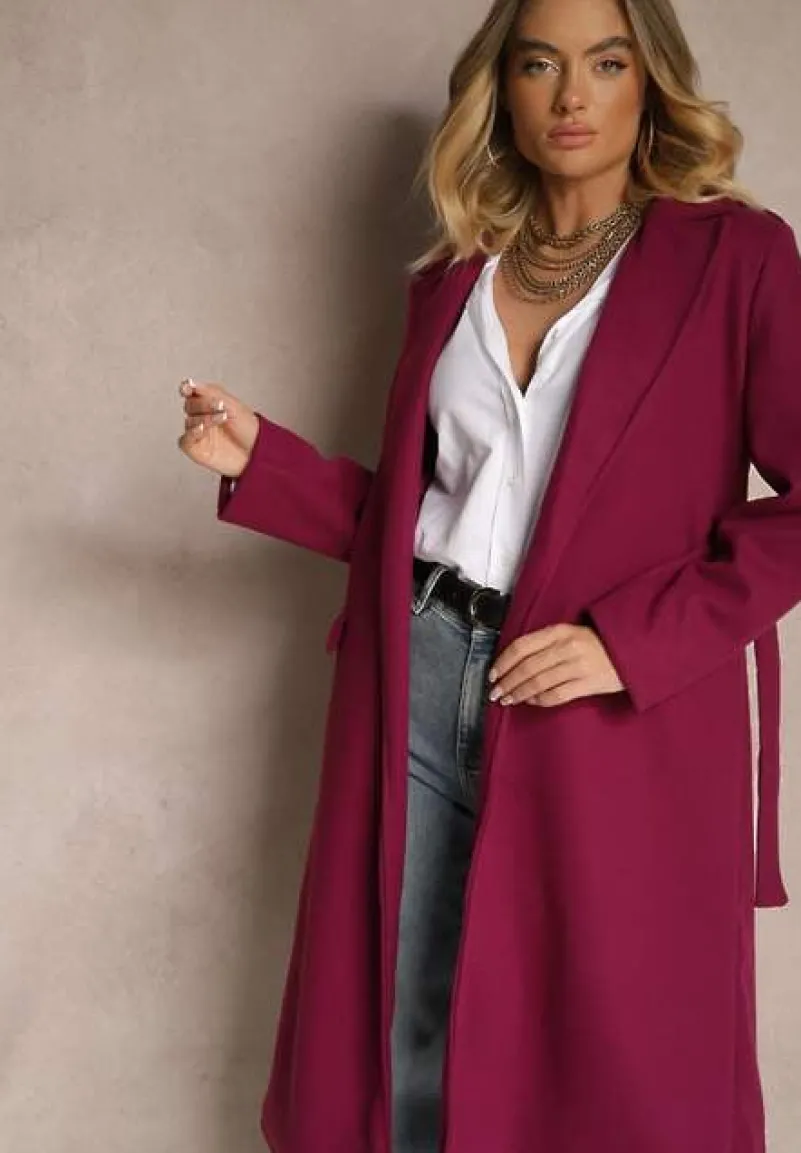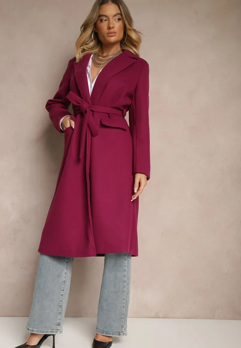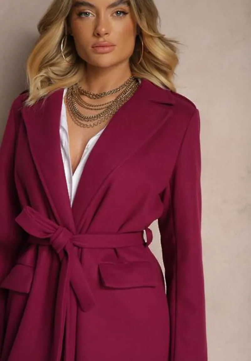 Płaszcz Seraphique o kobiecym, taliowanym kroju, sięgający za kolano. Wiązany w pasie materiałowym paskiem. Na ramionach ozdobne pagony z guzikami.