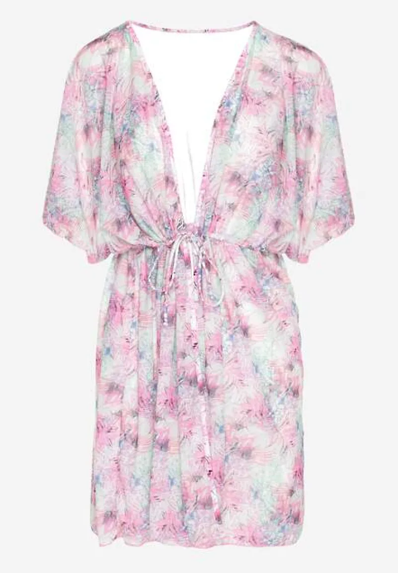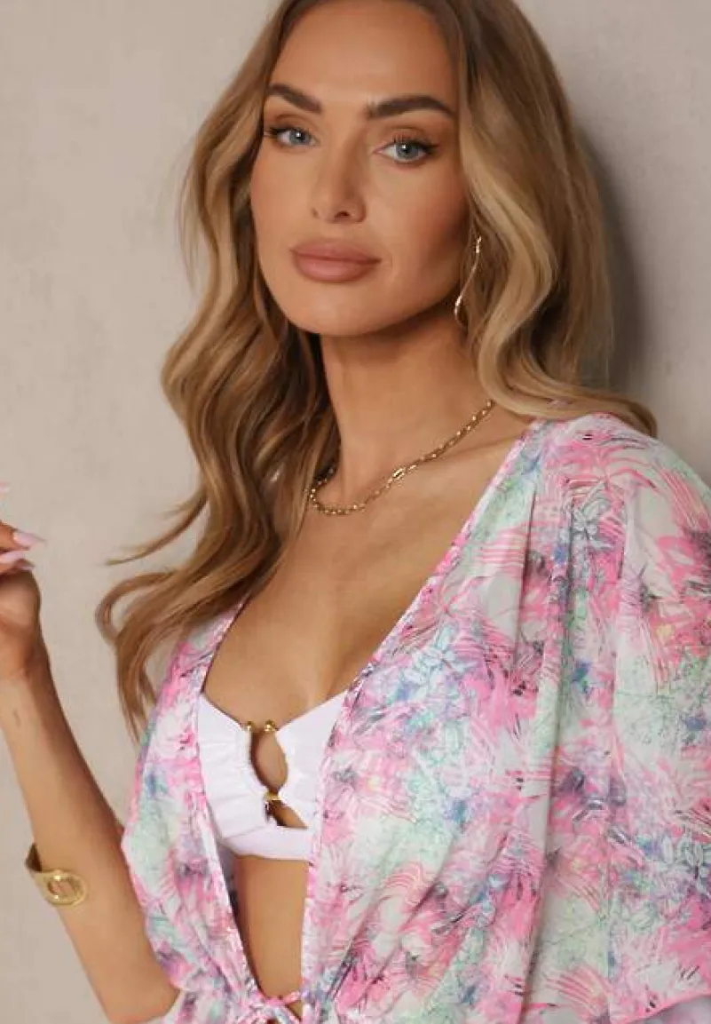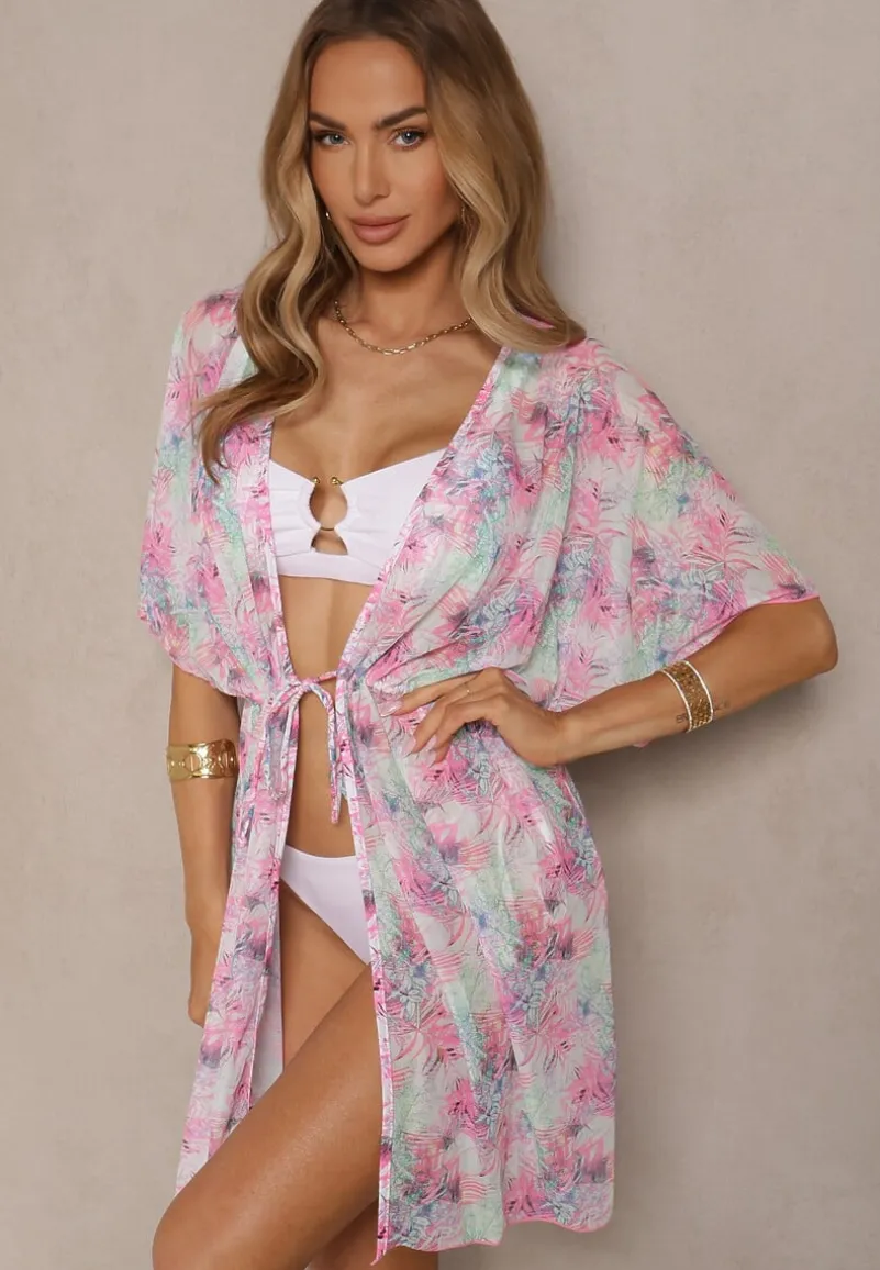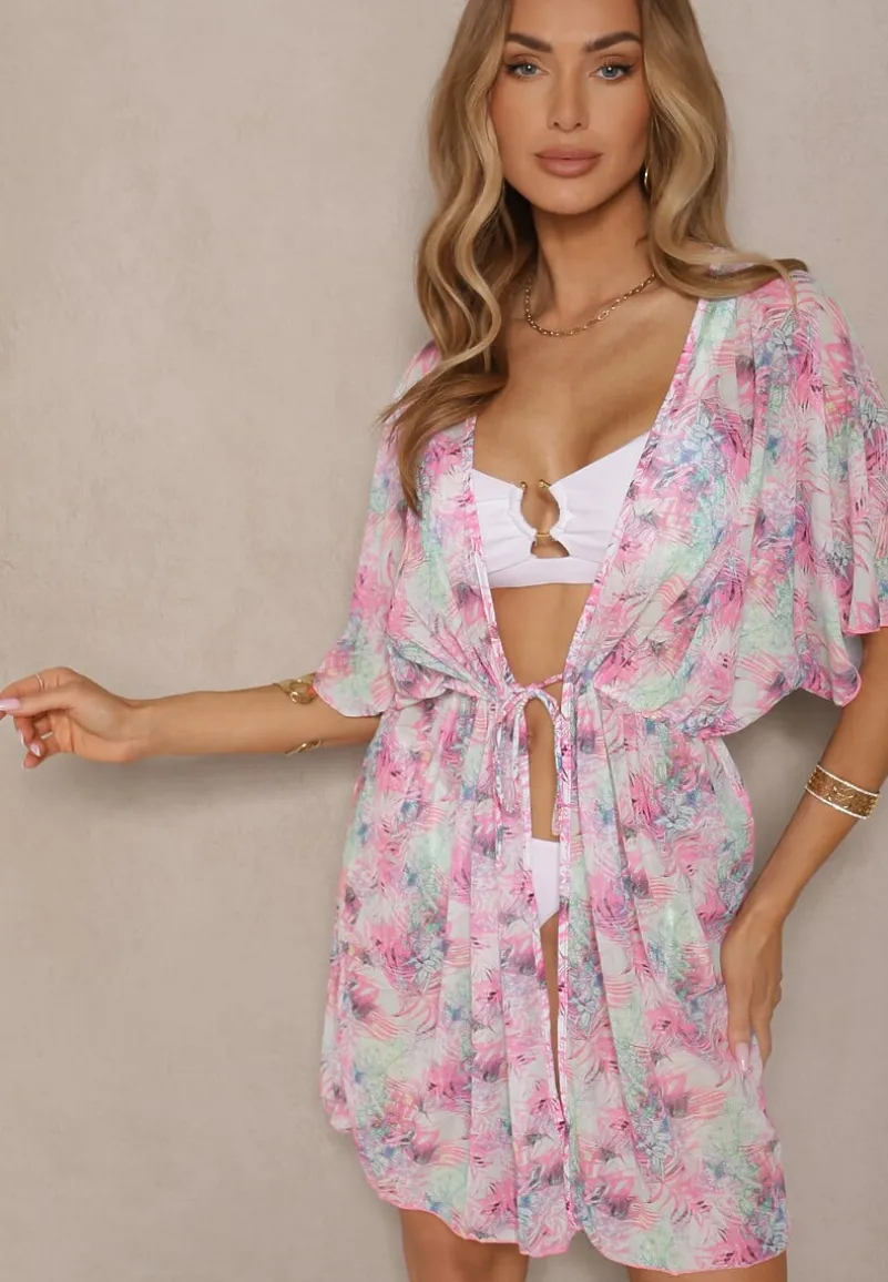 Narzutka Plażowa z Wiązaniem w Kwiatowy Wzór Mevelaura to must-have w letniej garderobie każdej modnej kobiety! Lekkość fasonu i kwiatowy wzór dodają uroku i subtelności, idealnie komponując się z plażowym lookiem. Dzięki wiązaniu w talii możesz podkreślić swoją sylwetkę. Zestaw ją z ulubionymi szortami i klapkami na plaży lub z sukienką maxi i sandałami na wieczorne wyjście — zawsze w modnym stylu!