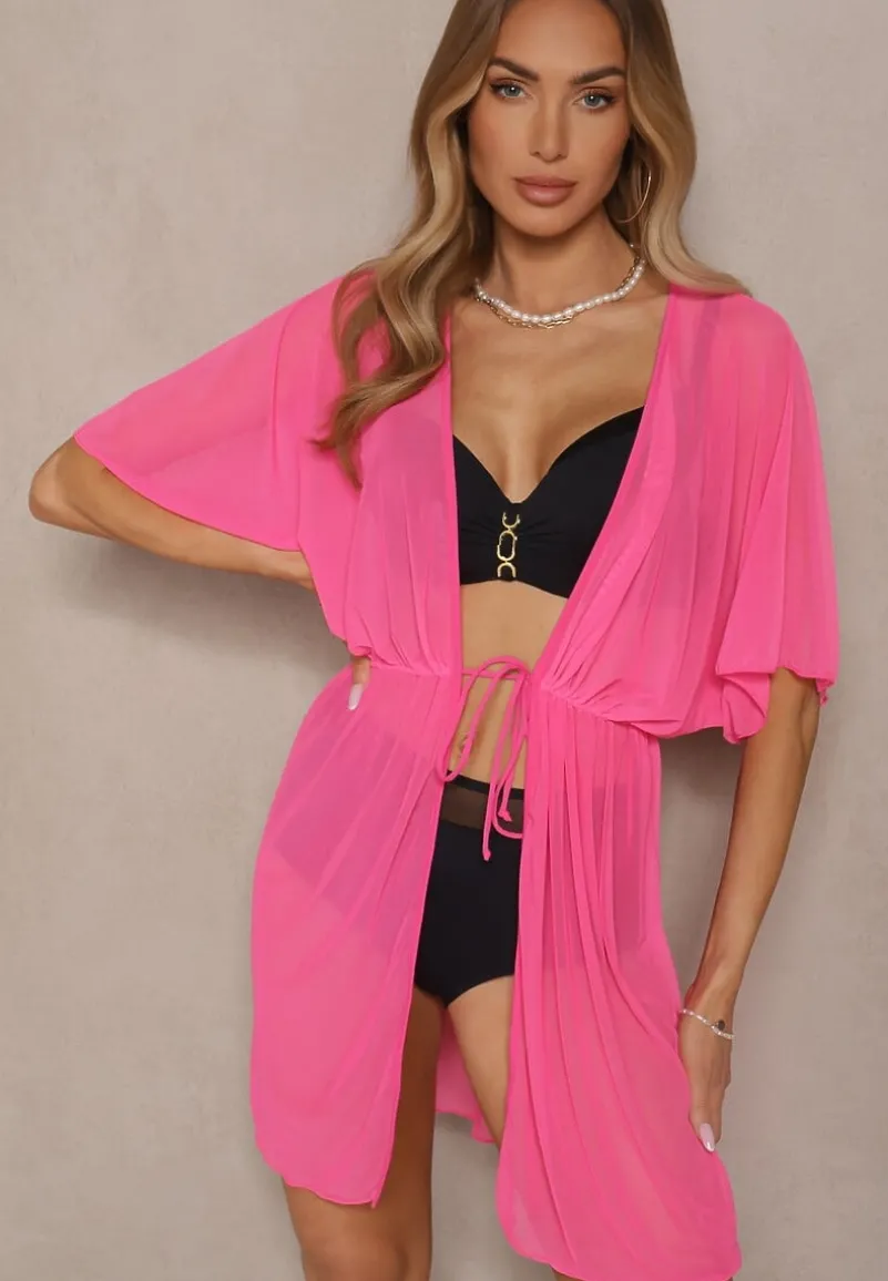 Odkryj letnią swobodę dzięki narzutce Sadeoliae, która łączy w sobie luz i elegancję! Jej delikatny fason z wiązaniem w talii podkreśli Twoje kobiece kształty, a siateczkowa faktura sprawi, że będziesz czuć się pewnie na każdej plaży.