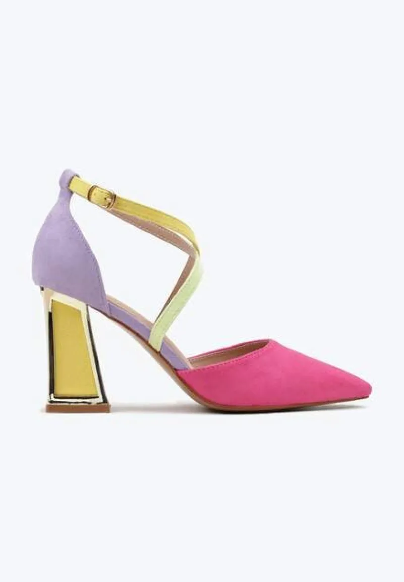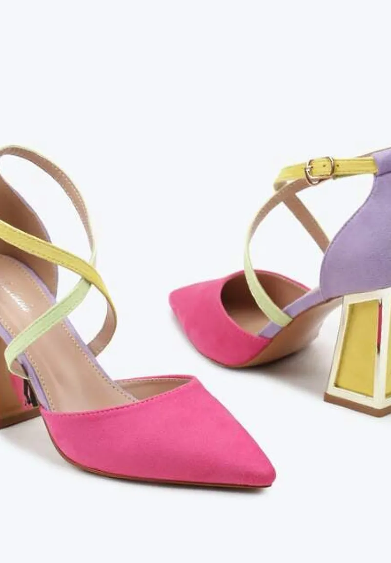 Czółenka Haslia to kwintesencja nowoczesnej elegancji połączonej z odrobiną ekstrawagancji. Wyjątkowość modelu podkreśla stożkowy obcas z metalowym obramowaniem, który dodaje im charakteru i stabilności. Spiczasty nosek nadaje sznyt, a praktyczne zapięcie na sprzączkę gwarantuje dopasowanie do stopy. W zależności od potrzeb, czółenka Haslia sprawdzą się zarówno w codziennym, miejskim stylu, jak i w eleganckich lookach.