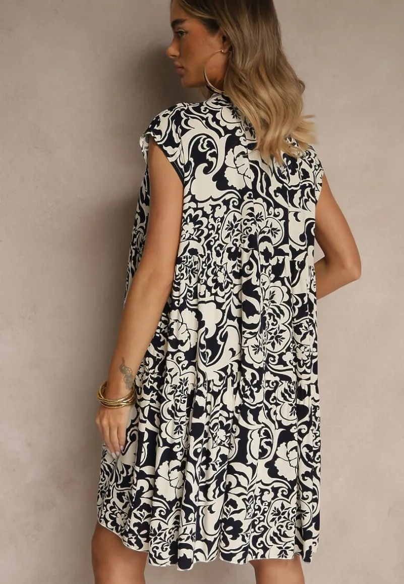 Sukienka Oversize z Bawełny z Ornamentnym Wzorem Folazea to idealny wybór dla kobiet. Wzór ornamentowy wprowadza nutkę elegancji, co sprawia, że sukienka świetnie sprawdzi się zarówno na co dzień, jak i na specjalne okazje — wystarczy zestawić ją z ulubionymi sneakersami na lunch z przyjaciółkami lub z eleganckimi sandałami na wieczorne wyjście. Wykonana z bawełny, co czyni ją doskonałym wyborem na letnie dni.
