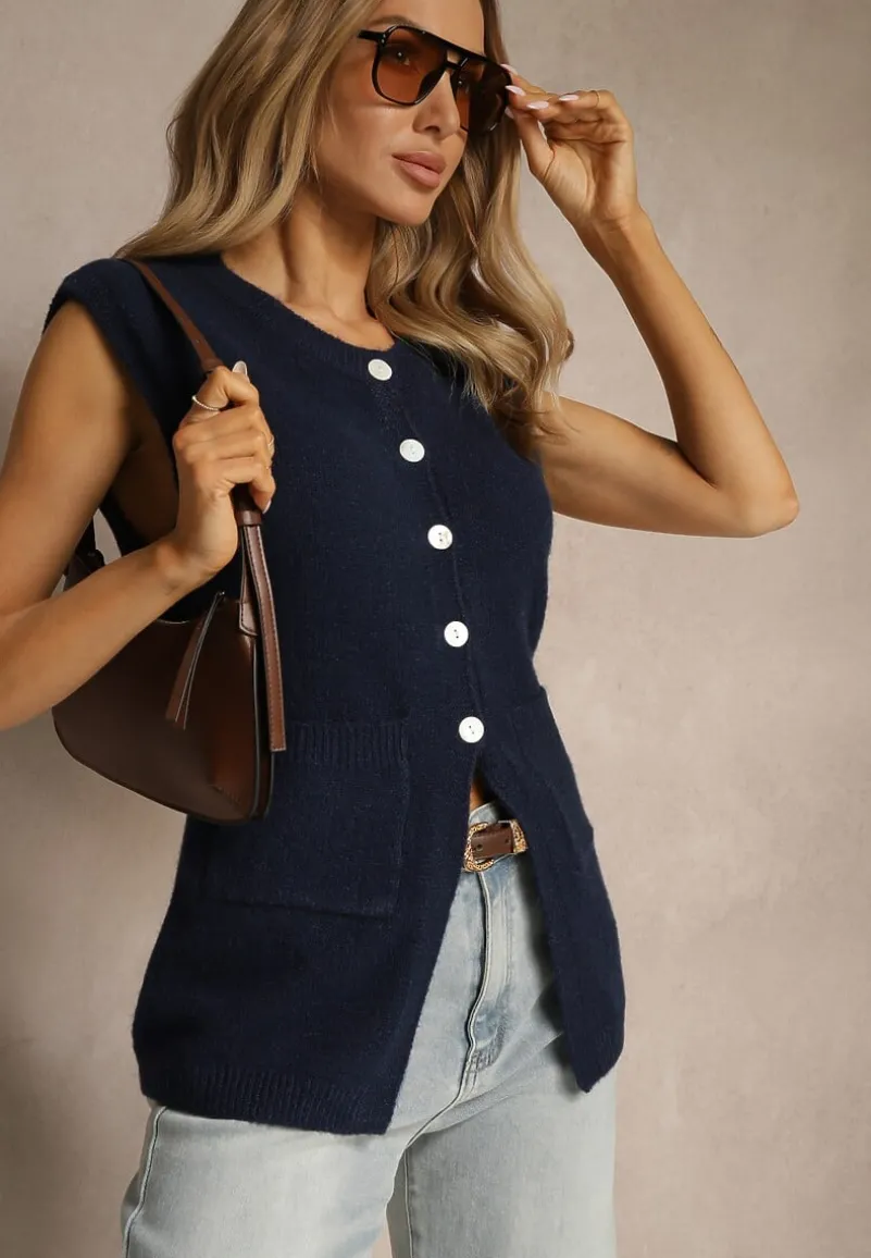 Zanurz się w świat elegancji dzięki Sweterkowej Kamizelce Haliriela na guziki ze wsuwanymi kieszeniami, która idealnie wpisuje się w aktualne trendy mody! Wykonana z wełną, doda Twoim stylizacjom przytulności, a efektowne guziki oraz kieszenie podkreślają jej unikalny charakter. Ta kamizelka to doskonały wybór na każdą okazję — zestaw ją z koszulą i spodniami w kant na formalne spotkanie lub z przyjemnymi jeansami i adidasami na codzienny spacer, a stworzysz zestaw, który zachwyci każdego! Niech Twój styl mówi sam za siebie — wybierz Halirielę i czuj się pewnie, gdziekolwiek się pojawisz!