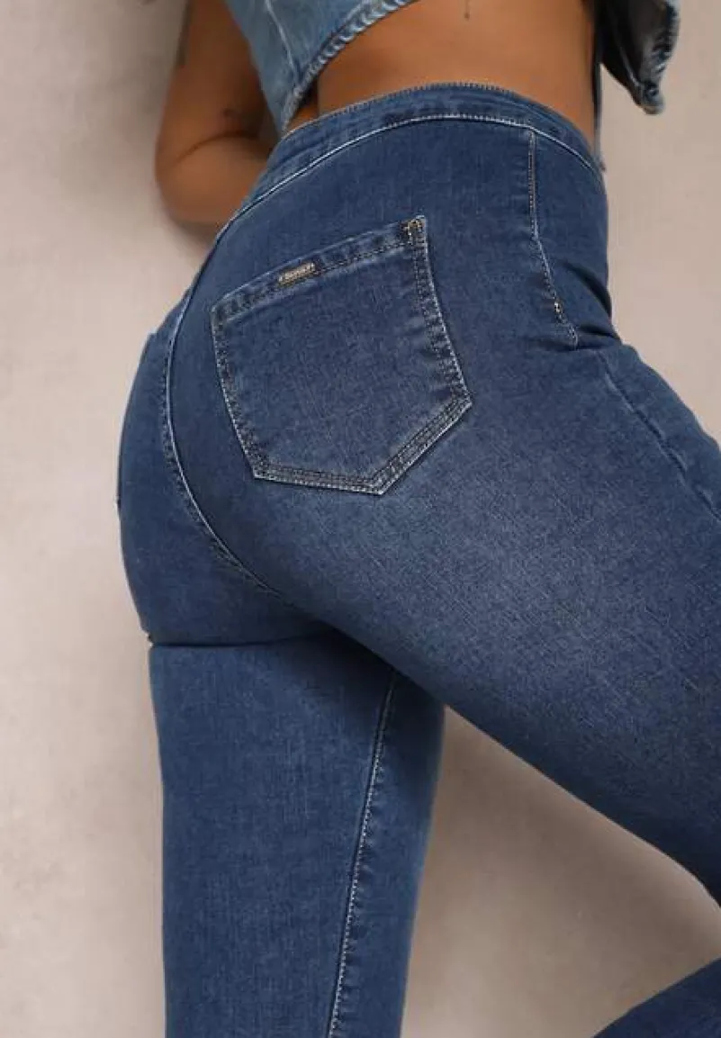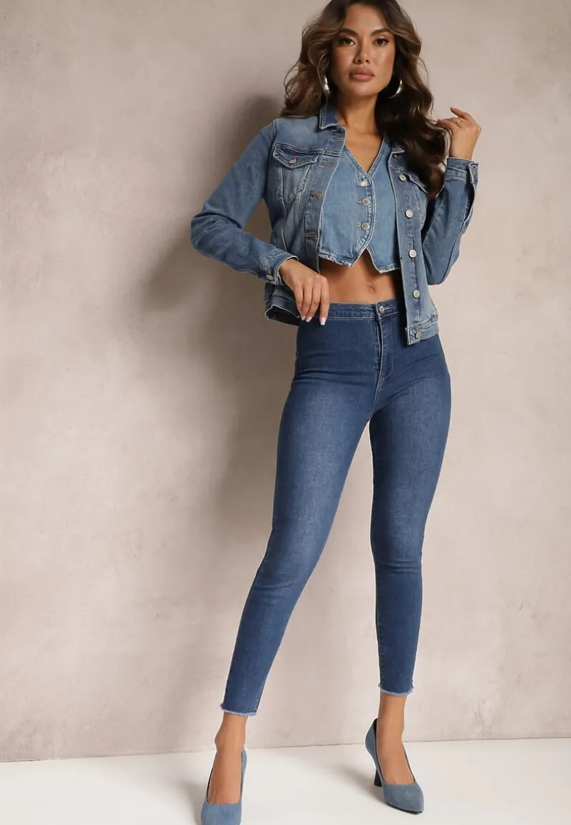 Jeansy Vivizo o dopasowanym fasonie skinny i talią high waist. Zapinane na zamek błyskawiczny oraz guzik. Dół nogawek lekko wystrzępiony. Wsuwane kieszenie z dwóch stron.