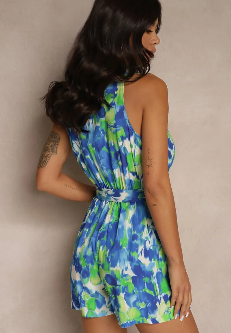 Granatowy Koszulowy Kombinezon Bez Rękawów z Wiskozą z Paskiem Tolinassa