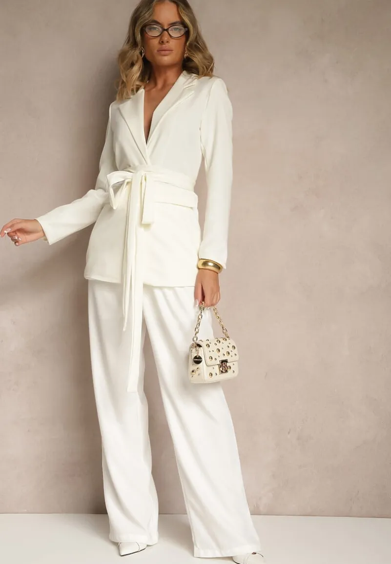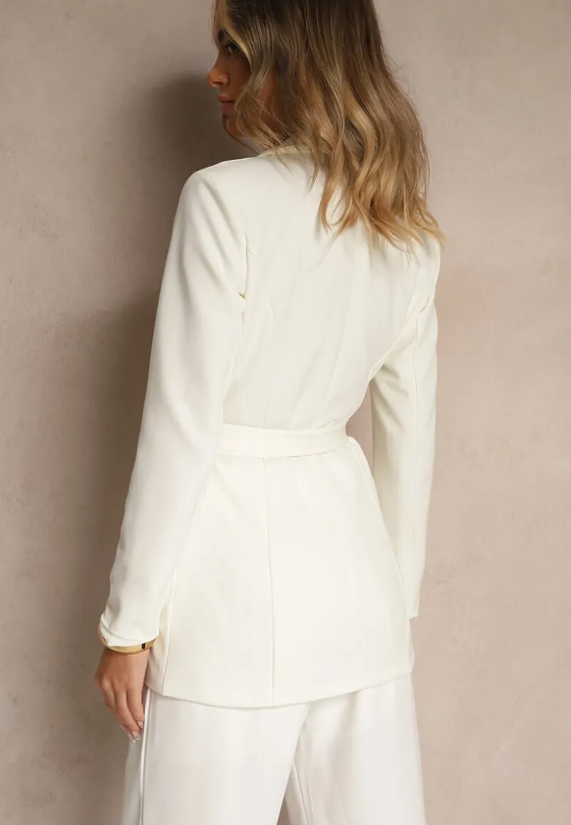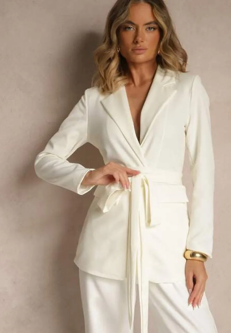 Marynarka Valerienne o luźnym kroju i jednorzędowym kroju. Przód zapinany na guziki. W ramionach wszyte poduszki. Wiązana w talii długim, wiązanym paskiem.