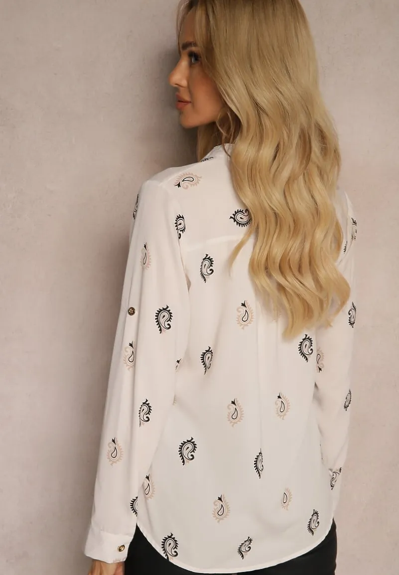 Koszula Irithe z subtelnym wzorem paisley to kwintesencja elegancji w każdym calu, a jej uniwersalny charakter sprawia, że świetnie wpisze się w stylizacje zarówno codzienne, jak i te na specjalne okazje. Długie rękawy można podwinąć i podpiąć na wysokości łokcia. Na spotkanie z przyjaciółmi zestaw koszulę z boyfriend jeansami i białymi trampkami, a do biura – z wysoko zapiętymi spodniami w kant i eleganckimi szpilkami. To must-have dla każdej fanki modowych nowinek!