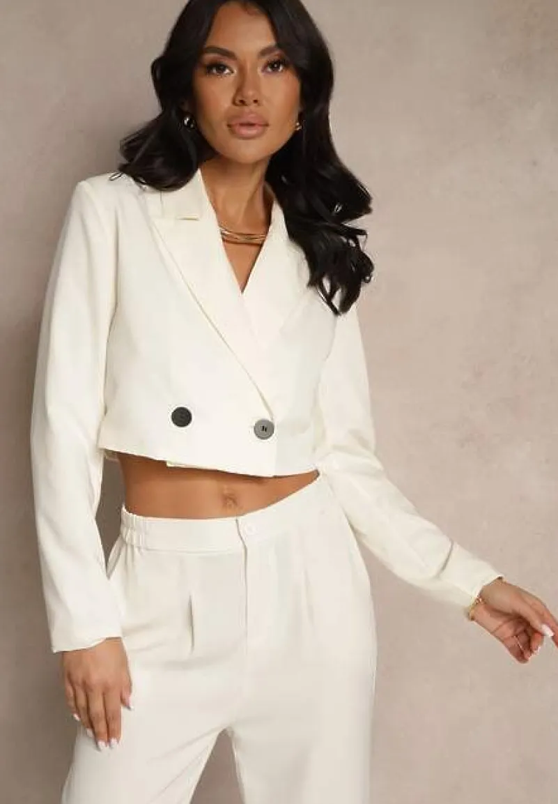 Marynarka Eclinta o stylowym, krótkim fasonie. W ramionach wszyte poduszki. Wygodnie zapinana z przodu na guziki.