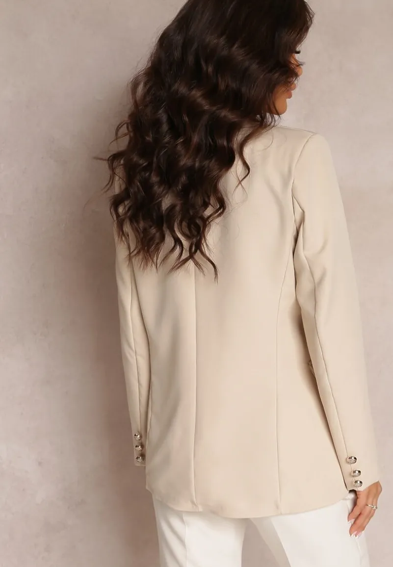 Marynarka Cose niezapinana, dekorowana biżuteryjnymi guziki z przodu i na rękawach. Posiada materiałową podszewkę. Po bokach ozdobne klapy, które imitują kieszenie.