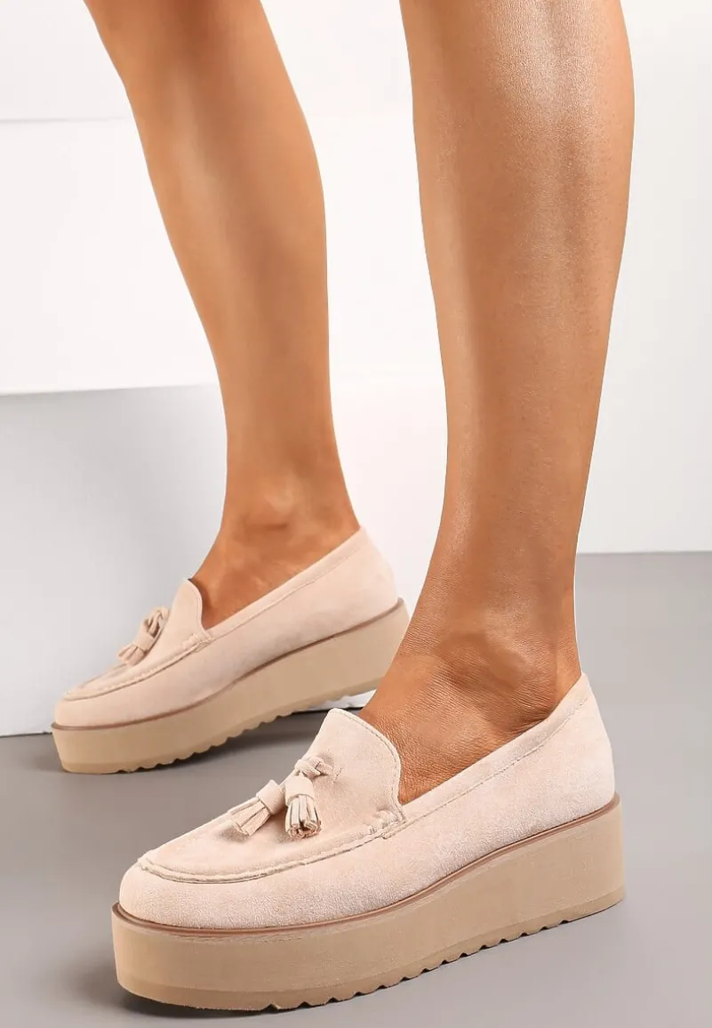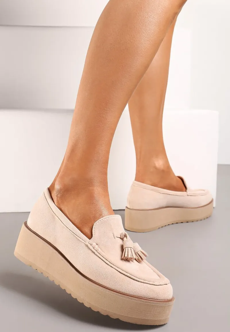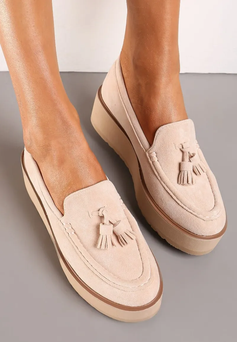 Wygodne półbuty Hiela na niskiej platformie z ozdobnymi frędzlami z przodu, będą pięknym uzupełnieniem każdego wiosennego outfitu!