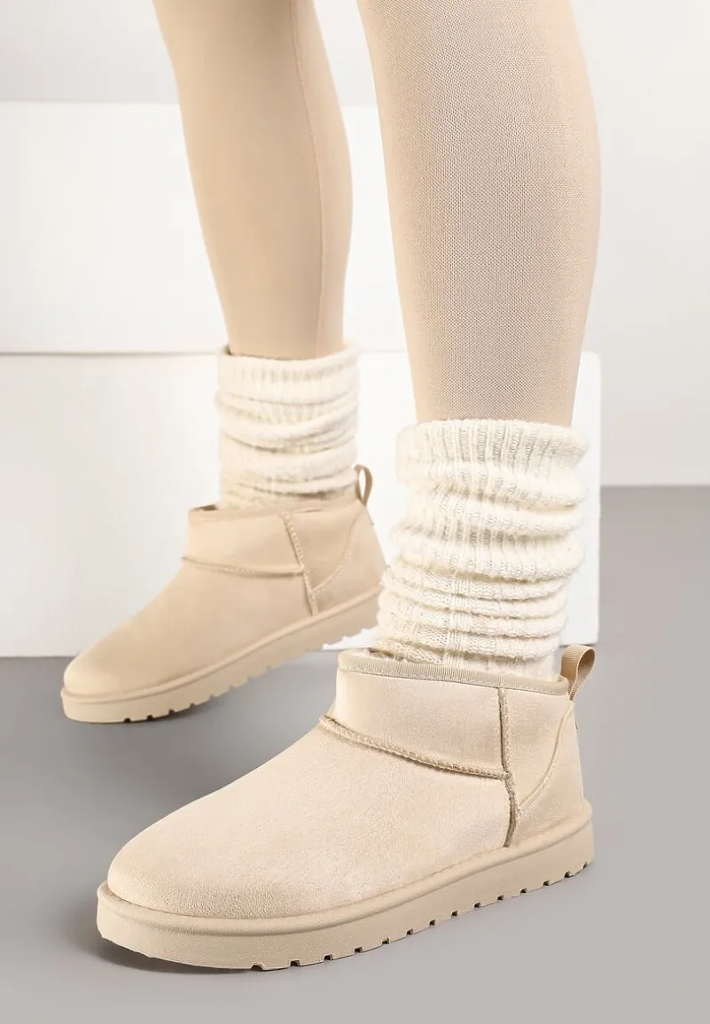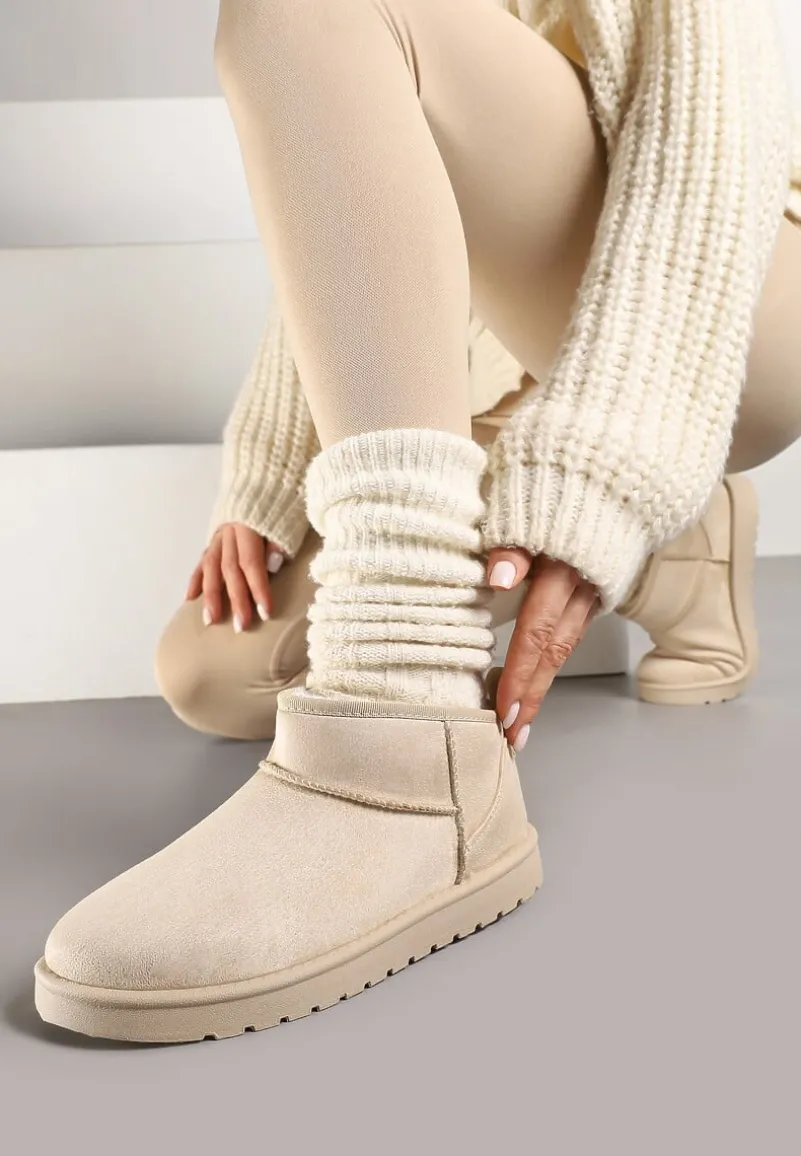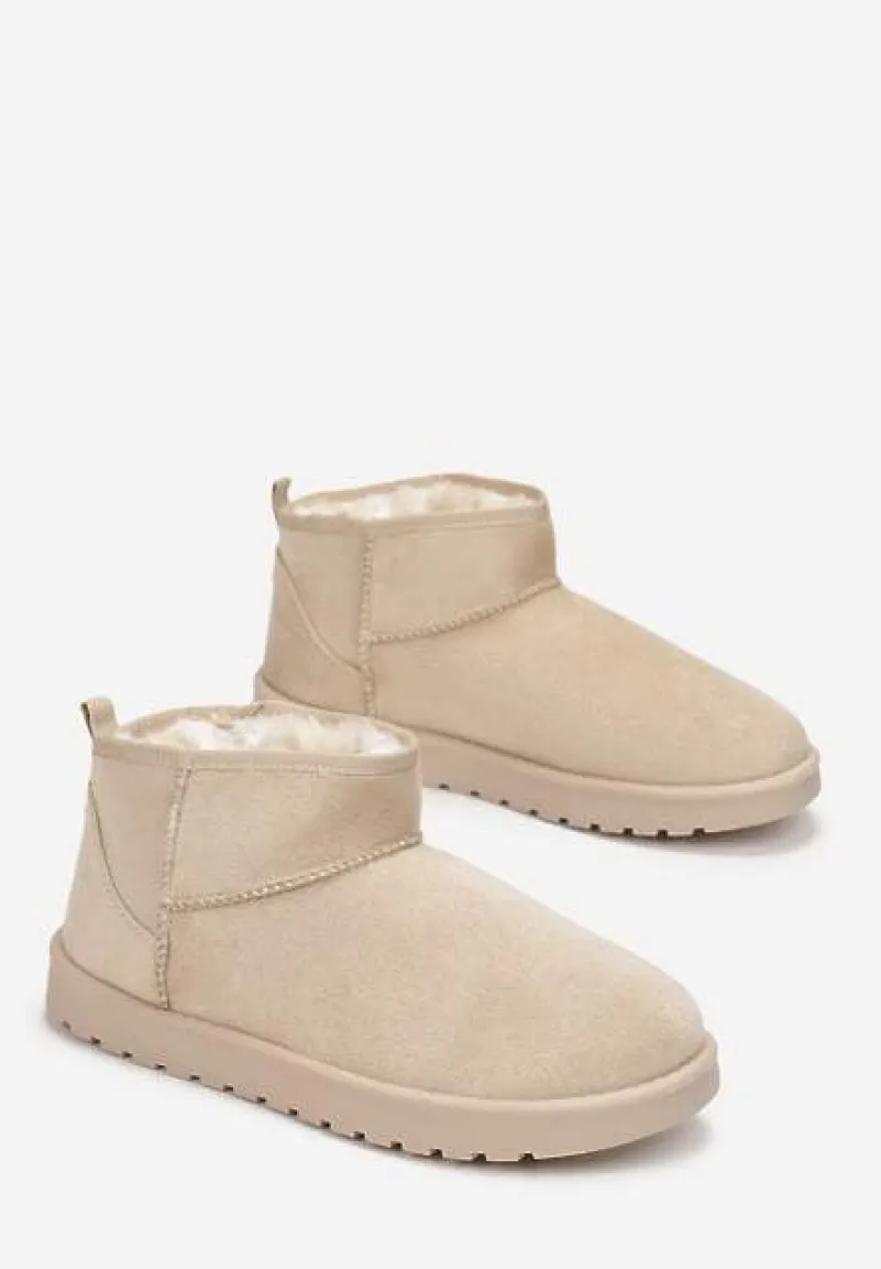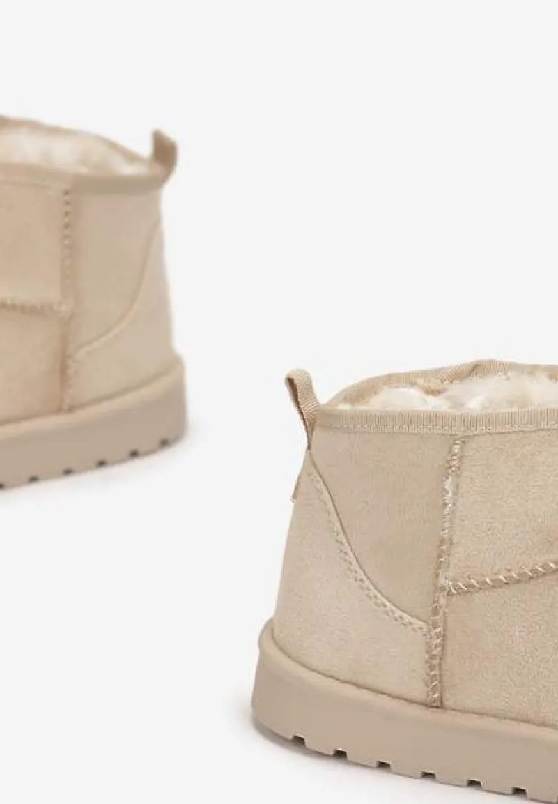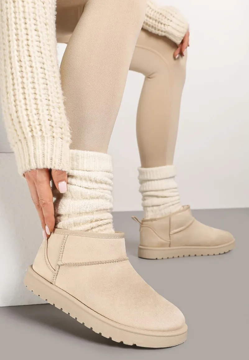 Śniegowce Antelaia na bardzo grubej podeszwie z protektorem. Nosek okrągły. Z krótką cholewką sięgającą delikatnie za kostkę. Nosek zaokrąglony. Urozmaicone przeszyciami w kolorze cholewki. Wykonane z ekozamszu, mocno ocieplane od środka materiałem imitującym futerko. Polecamy zakup rozmiaru o 1 większego. Najlepiej wyglądają w towarzystwie modnej, metalicznej kurtki i dopasowanych spodni.