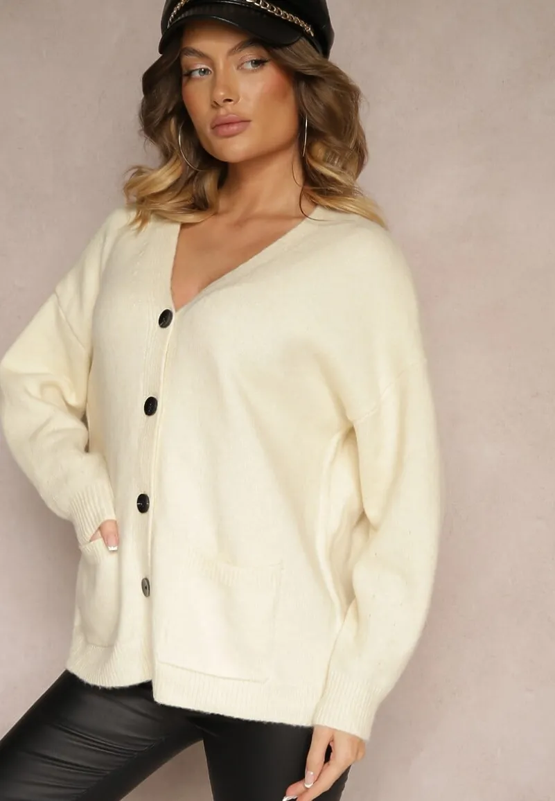 Casualowy Kardigan z Wełną na Guziki Floradi to uniwersalny element garderoby, idealny na chłodniejsze dni i wieczory. Jego klasyczny dekolt w serek pięknie eksponuje szyję, niosąc ze sobą nutę subtelnej elegancji. Długie rękawy zapewniają ciepło, a zarazem pozostają na bieżąco z trendami. Możesz go nosić na co dzień, łącząc z ulubionymi jeansami i trampkami, lub też założyć do eleganckiej spódnicy i botków na obcasie, kiedy szykujesz się na formalne wyjście. Fason kardiganu dopasowuje się do sylwetki, podkreślając jej zalety, a dodatkowe urokliwe guziki dodają charakteru całej stylizacji.