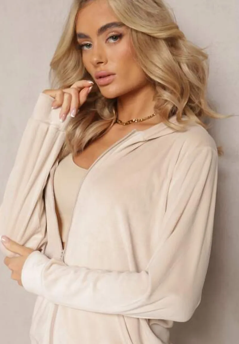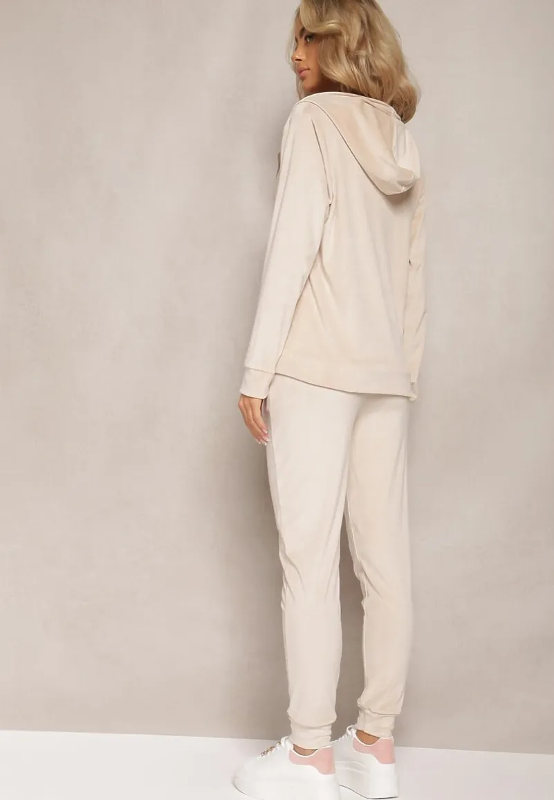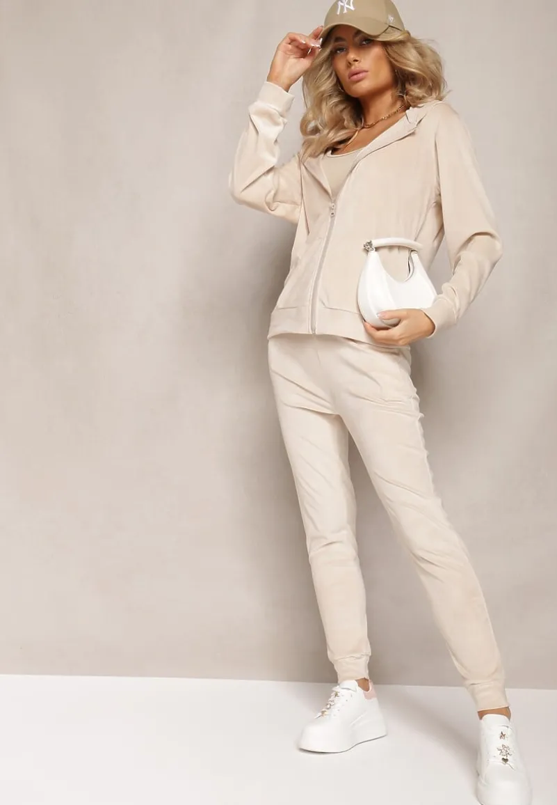 Komplet Dresowy Arislo z welurowej dzianiny, składa się z bluzy z kapturem i prostych spodni. Bluza i spodnie posiadają wsuwane kieszonki. Idealny do Twoich ulubionych sneakersów!