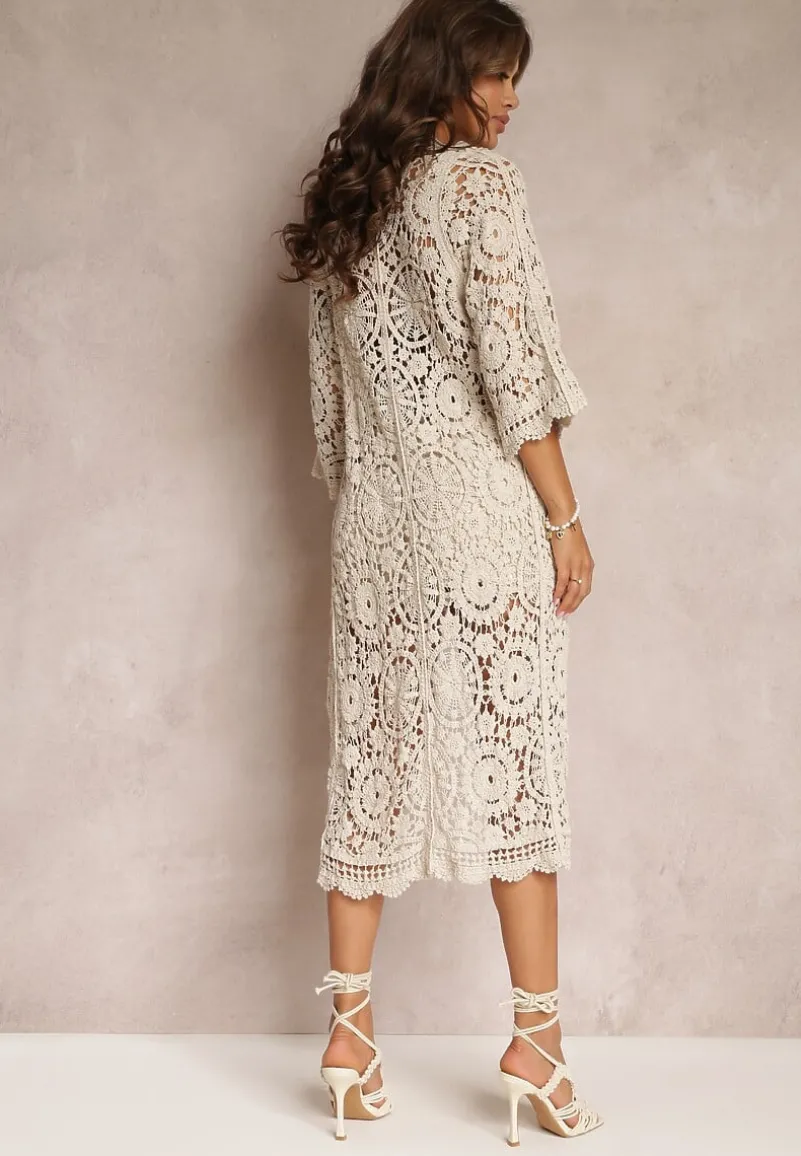Kardigan plażowy w stylu boho z ażurowymi zdobieniami i wiązaniem przy biuście wyróżni każdy wakacyjny look!
