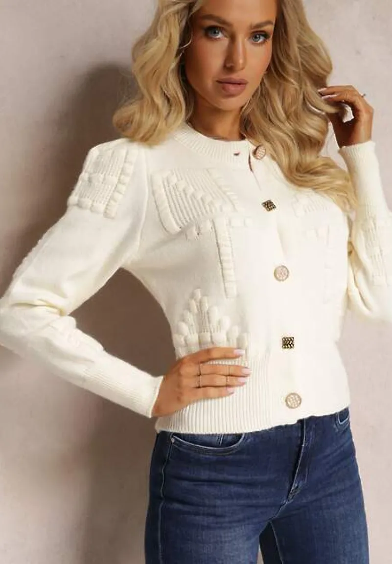 Kardigan Genadia w jednolitym kolorze, wykonany w 100% z oddychającej wiskozy. Posiada okrągły dekolt i ozdobne guziki.