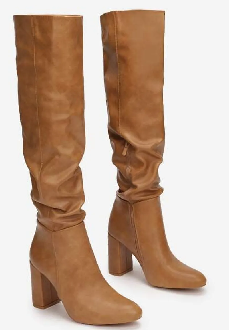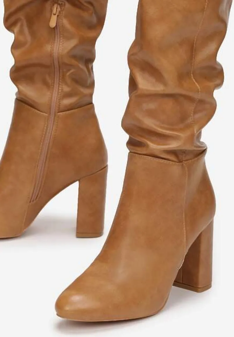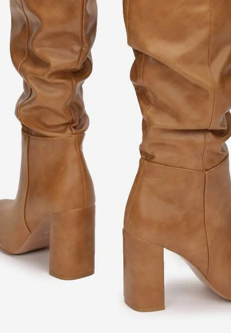 Kozaki Ertris wąskie, sięgające przed kolano. Z zapięciem na zamek błyskawiczny. Wysoki obcas typu słupek, nosek zaokrąglony. Wykonane z ekoskóry, nieocieplane. Kozaki Ertris będą perfekcyjnym dopełnieniem jesienno-zimowej lub wiosennej stylizacji. Dopasują się zarówno do outfitów codziennych, jak i tych eleganckich. Wąskie, najlepiej leżą na smukłej stopie. Wybierz większy rozmiar (spójrz na tabelę).