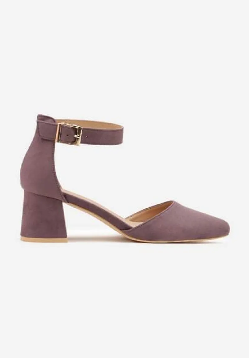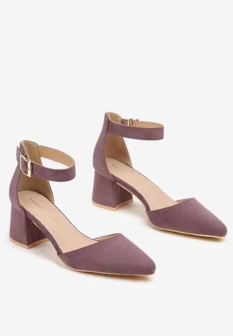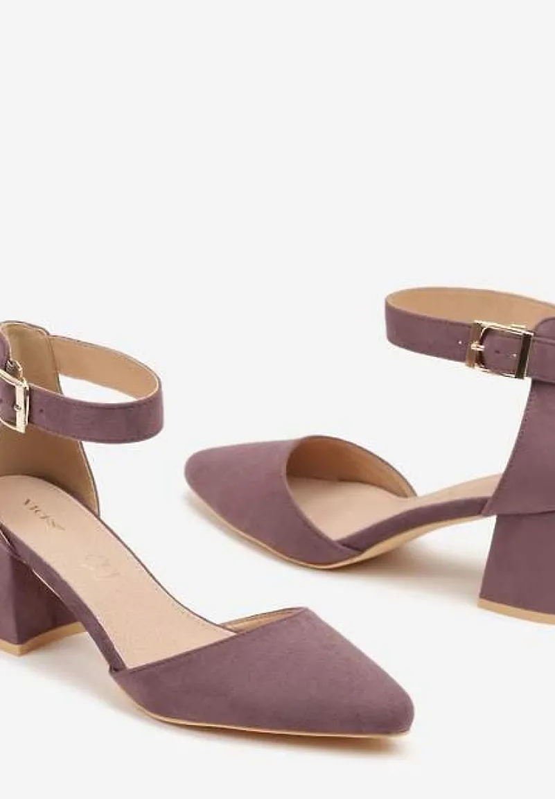 Jasnofioletowe Czółenka na Słupku Vices ze Skórzaną Wkładką i Paskiem Wokół Kostki Eveliri