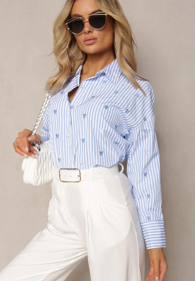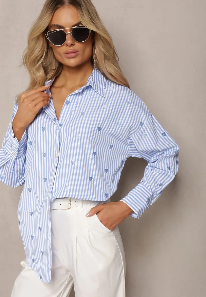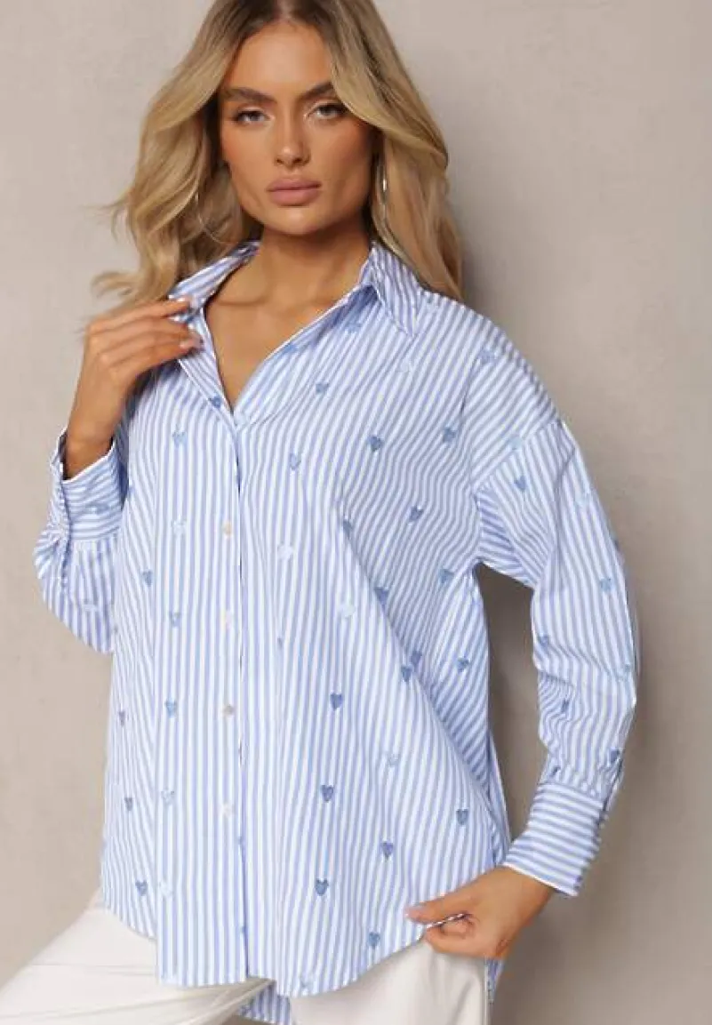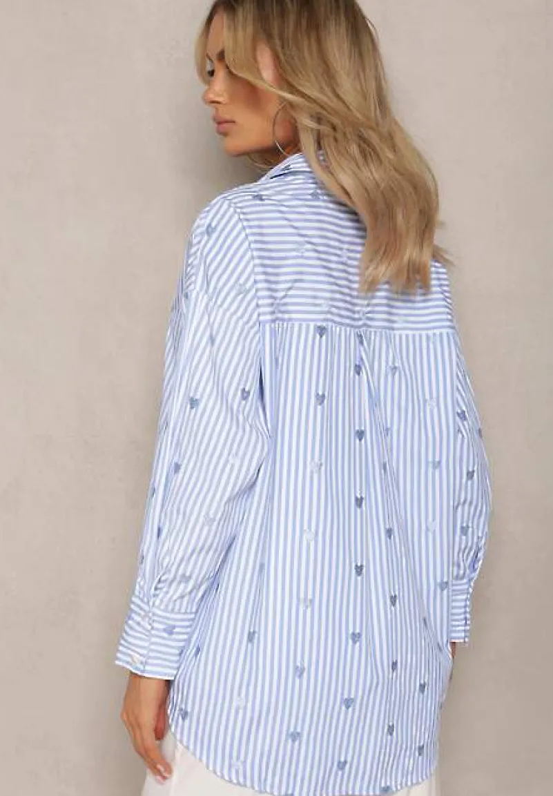 Bawełniana koszula Vatille w paski urozmaicona o małe, wyszywane serduszka.