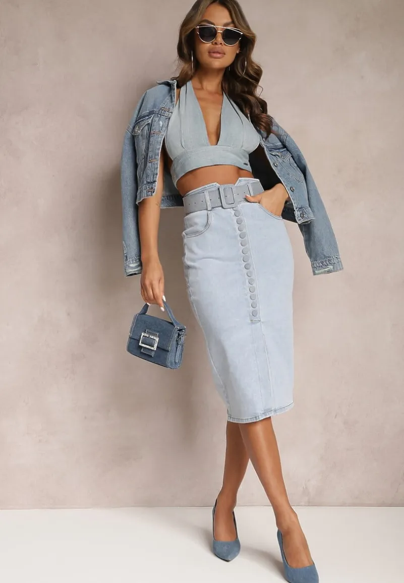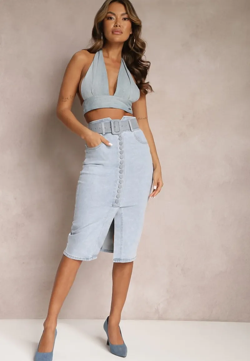 Spódnica Jackiesa to modny jeansowy fason ołówkowy o długości midi. Z tyłu zapinana na zamek błyskawiczny, z przodu rząd ozdobnych guzików i rozcięcie na dole. Wsuwane kieszonki.