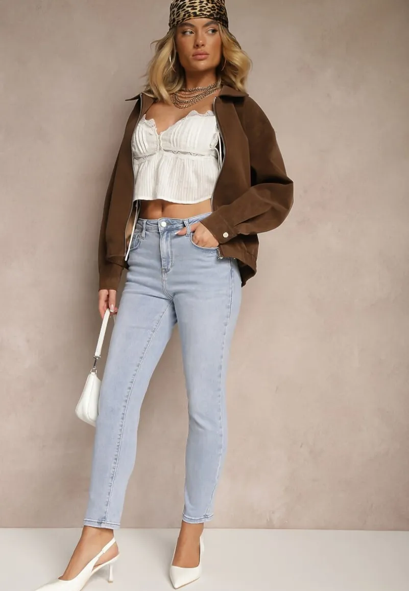 Bawełniane Skinny jeansy z wysokim stanem Seslina z bawełny ze wsuwanymi kieszeniami na suwak i guzik to absolutny must-have dla każdej fashionistki podążającej za najnowszymi trendami. Na co dzień zestaw je z oversize’owym swetrem i sneakersami.