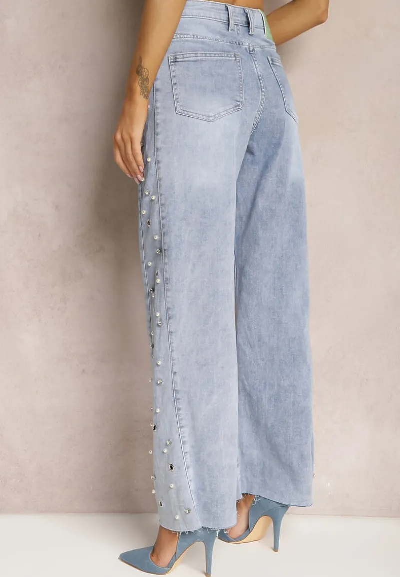 Szerokie Jeansy z Perełkami i Nitami to Must-have w szafie każdej fashionistki, która chce wprowadzić odrobinę ekstrawagancji do swojego codziennego stylu. Charakteryzują się luźnym krojem, zaś wysoki stan podkreśla talię. Pełnia elegancji objawia się w subtelnych zdobieniach z perełek i nitem, biegnących wzdłuż nogawek – idealne dla dodania charakteru nawet prostemu outfitowi. Na co dzień świetnie komponują się z casualową koszulką i sneakersami, a w wydaniu wieczorowym – z jedwabną bluzką i szpilkami, tworząc look godny miejskiej trendsetterki.