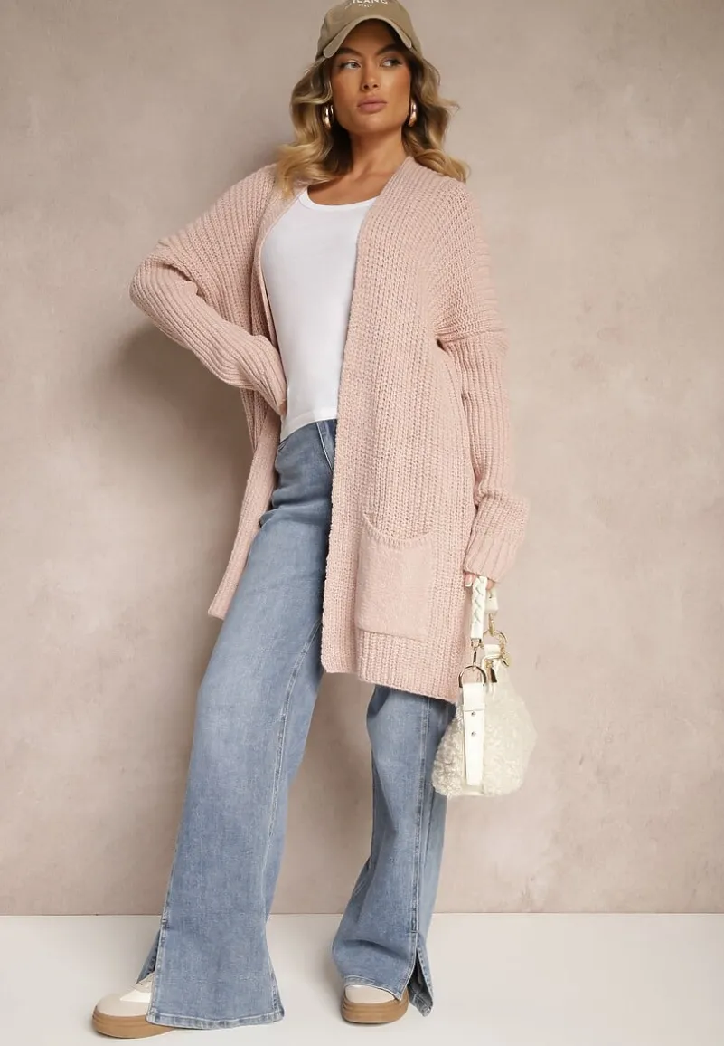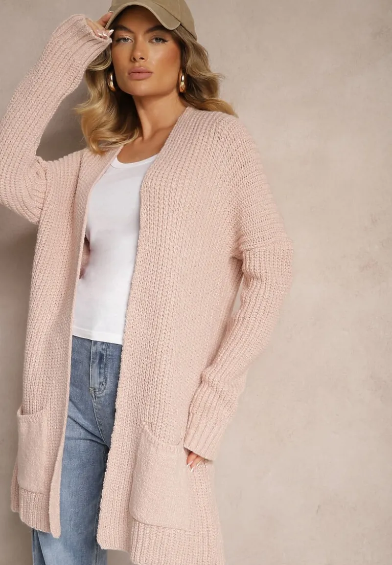 Długi Kardigan Viatha to must-have w szafie każdej trendsetterki, która ceni sobie wygodę i styl. Bez zapięcia i z obniżoną linią ramion, jego luźny fason swobodnie opływa sylwetkę, gwarantując trendy look. Wkomponuj go w swoje codzienne outfity, zestawiając z topem na ramiączkach i dopasowanymi jeansami, lub stwórz eleganckie stylizacje, dodając sukienkę midi i wysokie obcasy. Długie rękawy i praktyczne wsuwane kieszenie to połączenie funkcjonalności z modnym designem, idealne na każdą okazję.
