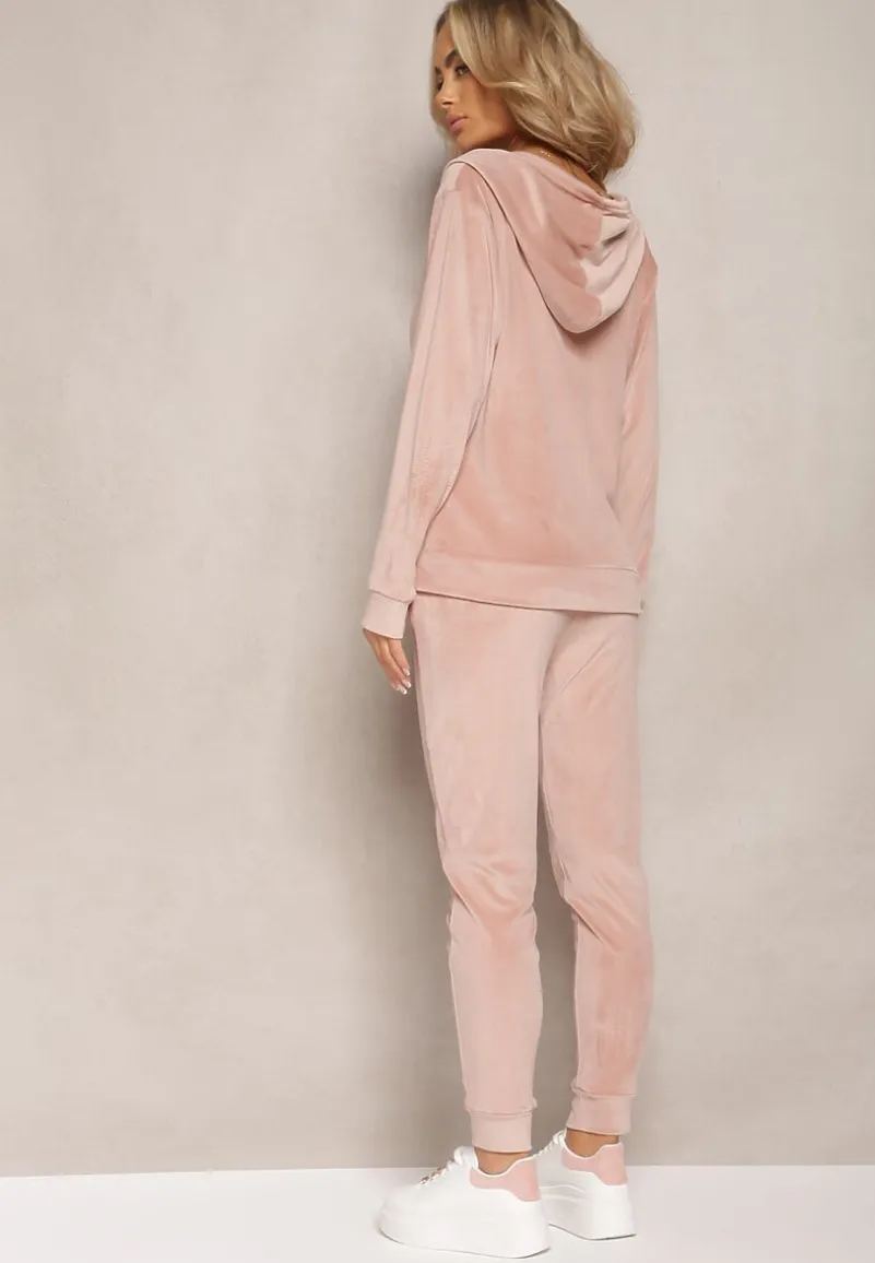 Komplet Dresowy Arislo z welurowej dzianiny, składa się z bluzy z kapturem i prostych spodni. Bluza i spodnie posiadają wsuwane kieszonki. Idealny do Twoich ulubionych sneakersów!